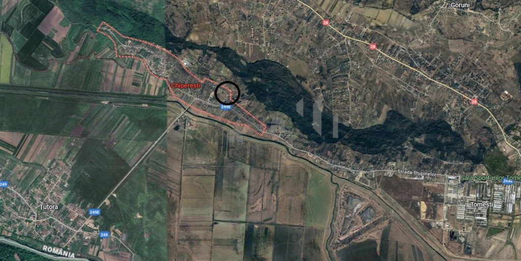 Proprietatea se afla in sat Chiperesti, com Tutora, la limita de granita cu Tomestiul si la doar 15 km de Iasi. apropae de mijloace de transport in comun.