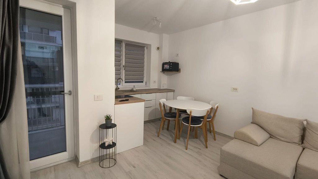 Apartamentul este orientat catre curtea interioara, e amenajat modern, utilat si mobilat cu bun gust.