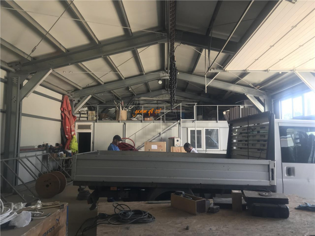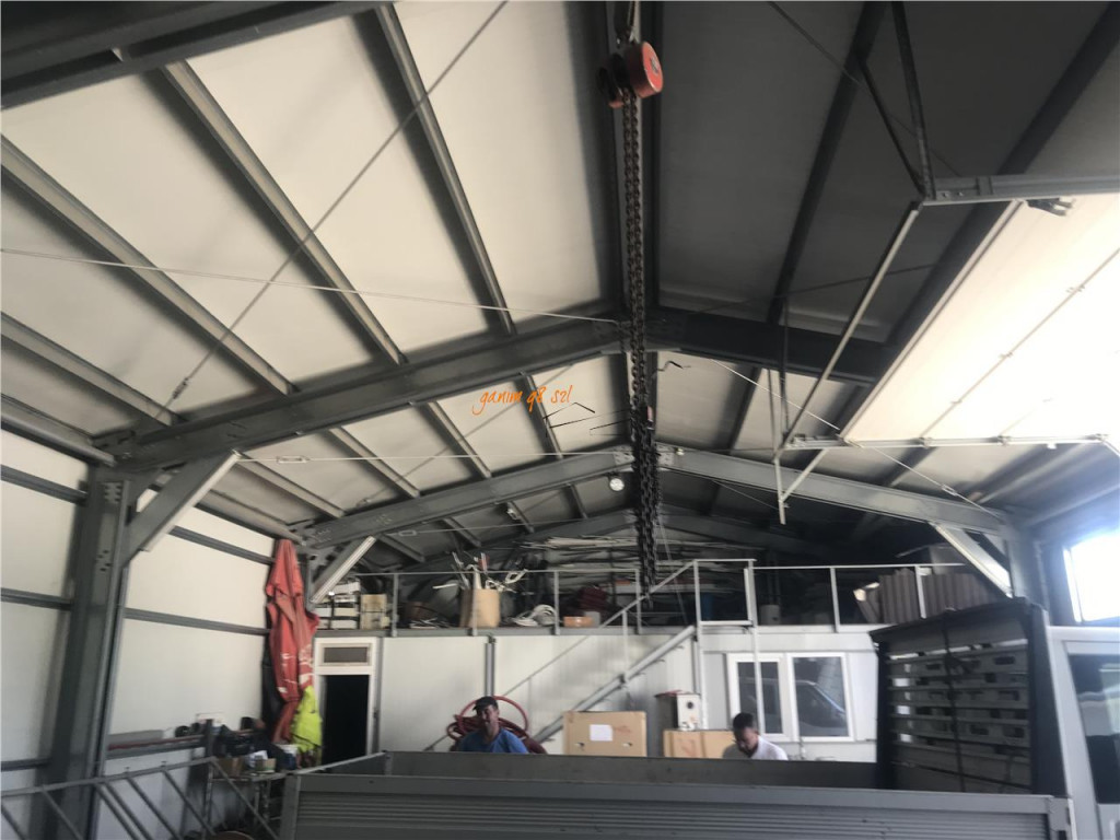 Agentia imobiliara Ganim 98 va propune spre vanzare un spatiu industrial situat in sat Golesti , format dintr-o cladire de birouri cu suprafata de 250 mp si o hala de 300 mp situate intr- o curte de 2365 mp cu 2 deschideri ( L =67ml , l = 35 ml) ,racordat la apa , canalizare , curent electric, precum si un put forat .In fata halei si a birourilor se afla o platforma betonata cu suprafata de 320 mp . Birourile dispun de aer conditionat , iar incalzirea pe timp de iarna se face cu o centrala termica pe lemne.Hala este construita din panouri sandwich, pe schelet metalic ,are lungimea de 30 ml si o latime de 10 mp , cu 2 usi de acces , inaltimea pana la coama este de 5,25 ml, curent 380 v .