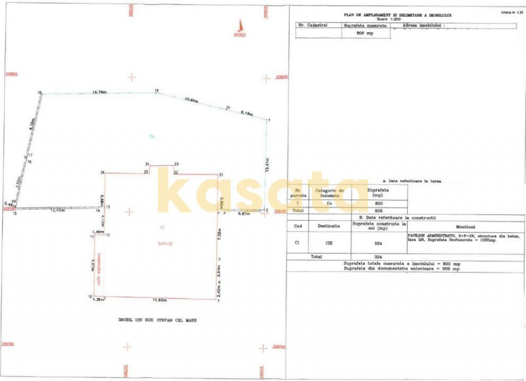 Suprafață totală teren: 800 mp;