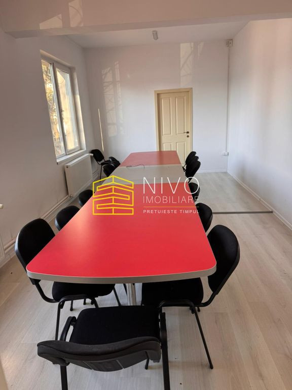 AC/204 Nivo Imobiliare vă propune spre închiriere această clădire de birou situată în Tg. Mureș, Mureșeni, Zona Prodcomplex. Imobilul este dispus pe 2 niveluri (P+E) având suprafața utilă de 584 mp și este compus din 14 încăperi parțial decomandate, sală de ședință, bucătărie și 4 băi. Este izolat termic, dotat cu centrală proprie, geamuri termopan și parchet laminat. Dispune de un teren de 271 mp, este îngrădit, cu acces auto. Se închiriază cu bucătărie mobilată și utilată la prețul de 4000 Euro/lună + TVA + garanție echivalentul unei chirii. Comisionul perceput este de 50% din contravaloarea unei chirii.