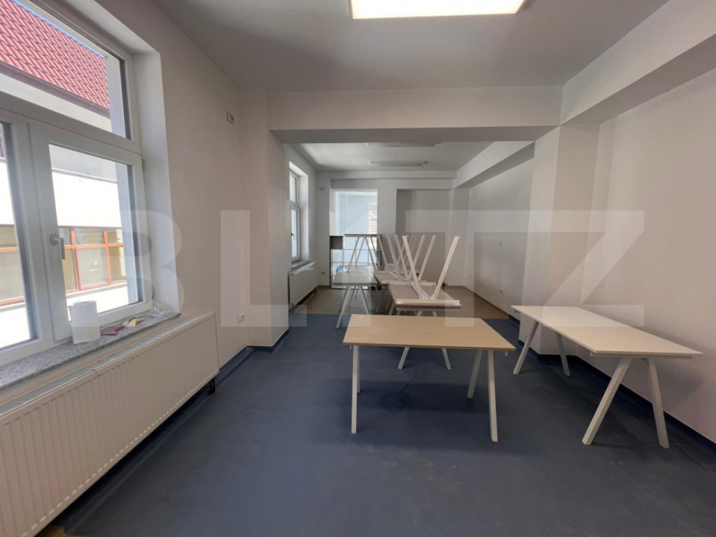 Blitz oferă spre închiriere clădire de birouri modernă, cu regim de înălțime D+P+3+M, având o suprafață utilă totală de aproximativ 800 mp. Imobilul este compartimentat eficient și beneficiază de facilități ideale pentru desfășurarea activităților de birou sau sediu de companie. Clădirea este dotată cu lift, oferind acces facil la toate nivelurile. Proprietatea dispune de o curte interioară generoasă și 40 de locuri de parcare, un avantaj important pentru angajați și vizitatori. Situată într-o zonă ușor accesibilă din orice punct al orașului, clădirea oferă conexiuni rapide către principalele artere și mijloace de transport. Pentru mai multe detalii sau pentru programarea unei vizionări, vă rugăm să ne contactați. Cod ofertă / ID BLITZ: P168385 Id intern: P168385