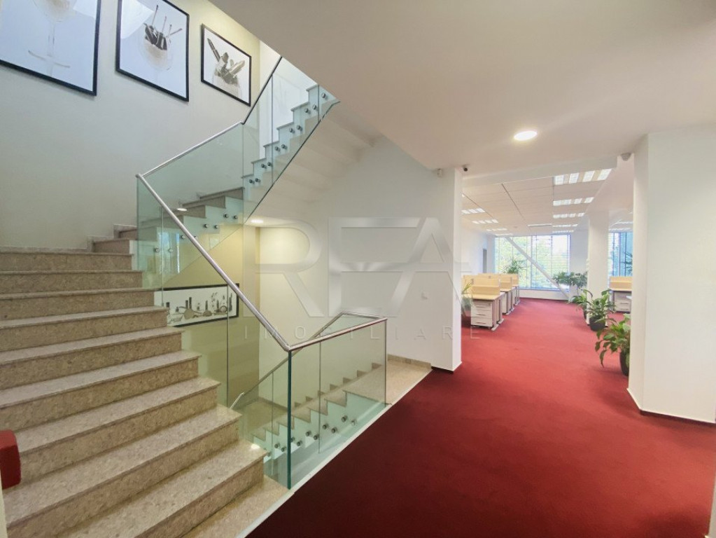 R.E.A. Imobiliare va propune spre Inchiriere o cladire de birouri cu un design modern, foarte frumos amenajata, complet mobilata si utilata, avand spatiile interioare impartite intr-un mod eficient si practic pentru o afacere de succes! Cladirea a fost construita in anul 2011 si are un regim de inaltime P+2, fiind amplasata pe un teren de 2000m.p. in sector 4, in zona de sud a Bucurestiului. Proprietatea dispune de o cladire de birouri cu o suprafata utila de 928m.p. , un depozit de 604m.p., o terasa la inaltime de 183m.p. si 20 de locuri de parcare. In zona exista centre comerciale si magazine, 2 statii de metrou si statii de autobuz. Cladirea este compusă din două corpuri care comunică între ele si beneficiaza de receptie , call-center, sală de conferinte, săli pentru întâlniri cu clientii, showroom si spatiu pentru depozitarea produselor. - corpul A: birouri/showroom/spatiu comercial P+2, 928 m.p. utili. - corpul B: depozit/spatiu comercial, 604 mp utili, 9 m inaltime. Parterul (A+B) are o suprafata utila totala de 902 mp, etajul 1 din corpul A are o suprafata utila de 305 mp, iar etajul 2 din corpul A are o suprafata utila de 325 mp. Imobilul este într-o stare impecabilă, construit în conformitate cu toate standardele, aproape de metrou (maxim 7 min de mers pe jos), are toate avizele (inclusiv ISU), post trafo propriu, răcire prin chiller si încălzire prin centrală termică (costuri foarte mici cu utilitatile), sală de conferinte cu 80 locuri si dotari audio-video profesionale, internet prin fibră optică, centrală telefonică cu call center, alarme de incendiu si antiefractie cu monitorizare, birouri mobilate modern, placări cu piatră naturală si lemn, mai multe grupuri sanitare (inclusiv pentru persoanele cu dizabilităti), depozit cu toate facilitătile (podea cu răsină epoxidică, trape de fum automate, sistem de încălzire cu ventiloconvectoare, etc.), care se poate transforma foarte usor în spatiu pentru birouri sau spatiu comercial, acces TIR si parcare privata. Pret vânzare : 2.500.000 EURO Pret închiriere : 15 000 EURO+TVA/lună. Se acceptă toate modalitățile de plată pentru achiziție. Informațiile tehnice au caracter orientativ, acestea fiind preluate de la proprietari. Pentru mai multe detalii și vizionări, ne puteți contacta telefonic, specificând codul de identificare P7230. Id intern: P7230