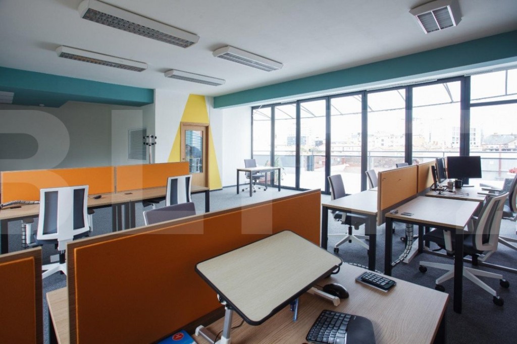 Cladire desfasurata pe S+P+4 in zona ultrancetrala, cu spatii de tip open space si compartimentari diferite pe fiecare etaj in parte cu o suprafata utila de 1450 de mp.. Cladirea dispune de spatii ample de receptie, loc de luat masa, zona recreere, sali de conferinte, lift, grupuri sanitare moderne si terasa exterioara pentru recreere ( barbeque) . Dispune de toata infrastructura IT necesara unei cladiri de birouri si corpuri de iluminat tip led. Cod ofertă / ID BLITZ: P3366 Id intern: P3366