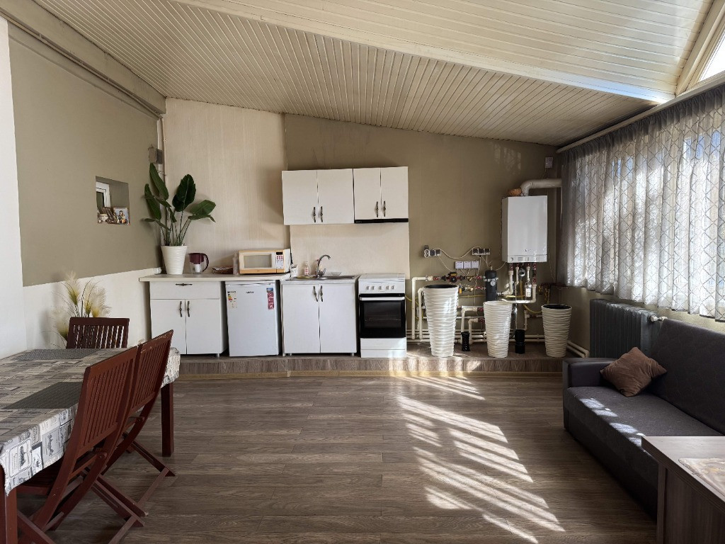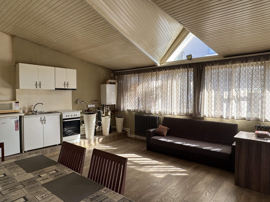 Cladirea propusa spre vanzare este compusa dintr-un atelier de productie si prestari servicii, care a functionat pana de curand ca atelier tamplarie PVC si un apartament de locuit si este amplasata pe un teren de 403 mp, cu deschidere de 14 m, in zona Tunari - str. General Aurel Aldea. Constructia are o amprenta la sol de cca 345 mp, in spatele careia este amenajata o curte de 60 mp, cu un foisor. Atelierul este o constructie pe parter, cu suprafata construita de cca 200 mp.cu zidarie din caramida, compus din atelier tamplarie PVC, depozit, birou si 2 grupuri sanitare. Locuinta este o extindere a atelierului, facuta in anul 2011,cu regim de inaltime de P+1, pe fundatii si stalpi din beton si zidarie de BCA, cu suprafata construita la sol de 145 mp. si suprafata desfasurata de 200 mp.acoperita cu tabla, compusa din living, bucatarie, trei dormitoare, doua bai si doua holuri. Cladirea este racordata la toate utilitatile (energie electrica, gaz, apa, canal), iar incalzirea se face cu centrala termica pe gaz. Felul in care a fost conceputa compartimentarea acestei cladiri, o face pretabila atat pentru utilizarea de catre o familie care isi gestioneaza afacerea proprie si poate sa si locuiasca acolo, cat si pentru cine desfasoara o afacere si foloseste locuinta pentru spatii de cazare personal angajat. Se agreeaza si INCHIRIEREA CLADIRII, toate conditiile de inchiriere putand fi discutate la momentul respectiv.