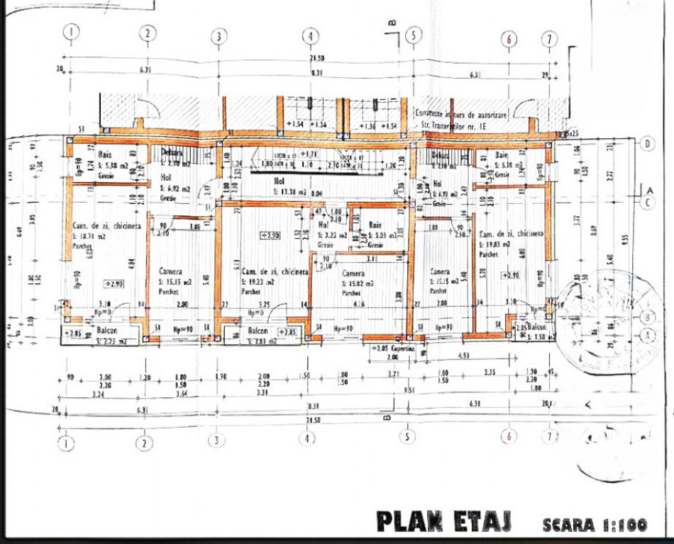 Etaje superioare: * Câte 3 unități locative pe nivel, fiecare având aproximativ 47 mp.