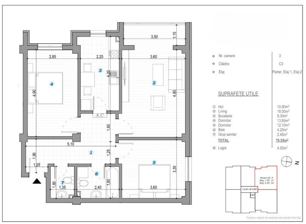 Comision 0% - pret direct de la dezvoltator. Ultimul disponibil de 3 camere. Invest Imobiliare va propune spre vanzare apartamente noi cu 1, 2 sau 3 camere situate in Popas Pacurari, Iasi, la 500 metri de Rond Era. Apartamentele se predau amenajate la cheie cu centrala proprie, balcoane inchise cu tamplarie Salamander, aer conditionat, incalzire in pardoseala. Proiectul cuprinde 3 blocuri cu regim redus de inaltime D+P+2E, fiecare prevazute cu lift. Accesul in complex este privat cu bariera, sistem de supraveghere video, sistem de iluminare exterioara, spatii verzi amenajate, statie de autobuz in fata complexului. Primele apartamente vor fi predate la cheie in decembrie 2025 cu posibilitate de achizitie si cu plata prin credit bancar. Pentru alte detalii contactati-ma la nr. tel. 0753482114. Id intern: P8445