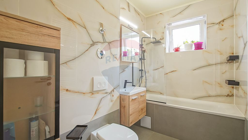 Va propun spre achiziție un apartament de 3 camere situat în Avantgarden 3 Bartolomeu, cu 75 mp utili, la care se adaugă un balcon generos de 14,29 mp, complet renovat, mobilat și utilat în 2025, gata de mutare. O locuință situată pe strada Pelicanului nr. 8 în blocul B 41 care bifează criteriile esențiale căutate de familii și de cei aflați în proces de relocare. Compartimentarea este ideală pentru viața de familie: două băi separate, oferind intimitate fiecărui membru al familiei și confort pentru musafiri. Baia principală este dotată cu cadă și geam pentru aerisire naturală, iar cea de-a doua baie cu duș walk-in. Apartamentul este situat la etaj intermediar (etajul 1) al unui imobil cu 5 etaje, beneficiază de orientare sud-vest și de multă lumină naturală pe tot parcursul zilei. Balconul, cu acces din living și din ambele dormitoare, extinde firesc spațiul interior și contribuie la senzația de confort și deschidere. Renovarea a fost realizată cu atenție la detalii, folosind finisaje premium și mobilier de calitate de la Staer și Mobexpert, completate de elemente moderne precum întrerupătoarele touch, care subliniază caracterul contemporan al locuinței. Proprietatea dispune de loc de parcare la prețul de 8500 euro și boxă la demisol inclusă în preț, completând pachetul unei locuințe funcționale și bine organizate. Avantgarden 3 Bartolomeu este un cartier destinat familiilor, bine structurat și aerisit, unde „Acasă” este un sentiment general. Accesul rapid către Aeroportul Internațional Brașov-Ghimbav reprezintă un avantaj important pentru cei care călătoresc frecvent sau se relochează. În imediata proximitate a blocului exista parc, grădiniță privata, grădiniță de stat nouă (deschidere în septembrie 2026), stații de autobuz către Centrul Vechi, Centrul Civic și Coresi, supermarketuri și servicii, iar în curând se vor deschide Kaufland, o sală de fitness și un nou centru comercial. Pentru mai multe detalii sau pentru a programa o vizionare, vă stau la dispoziție.
