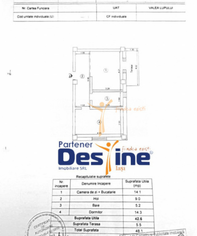 DESTINE IMOBILIARE vă prezintă spre vânzare: Apartament 2 camere model OPEN SPACE, Valea Lupului Preț: 76.900 €uro * Detalii si informații utile: Imobil construit in anul 2020 Suprafață utila totala de 48 mp Etaj - PARTER INALT - imobil cu 4 etaje * Avantajele locuinței: - CENTRALA TERMICĂ. - AER CONDIȚIONAT. - Terasă intabulată. - LOC DE PARCARE. - Supraveghere video 24/7. - Tâmplărie PVC cu geam termopan. - Acces securizat cu barieră accesată prin telecomandă. * Apartamentul face parte dintr-un complex nou, cu toate facilitățile în zonă: grădiniță, creșă, școală spatii comerciale, parcuri și spații de joacă pentru copii, diverse magazine și farmacii. * Imobilul se află la doar 5 minute de mers pe jos până la stația CTP pentru mijloace de transport în comun. IMPORTANT: >>> Această proprietate se poate fi creditată, iar broker-ul nostru este aici pentru a facilita acest proces pe tot parcursul sau. Fara costuri suplimentare ! Fara comision pentru creditare! Detalii suplimentare sau vizionari: Toni Galu - 0736.84.84.88 Cod ofertă: P4103 Id intern: P4103