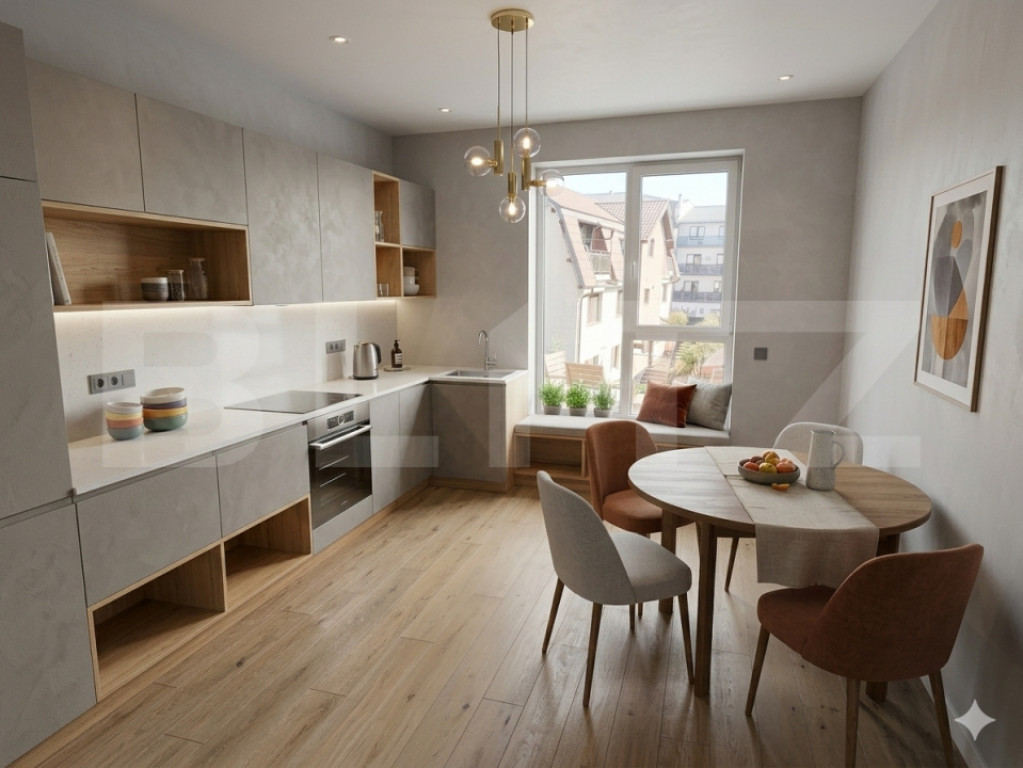 BLITZ vă prezintă un ansamblu rezidențial modern situat în zona Cojocnei, Apahida – un proiect atent conceput pentru cei care își doresc confort, eficiență energetică și acces rapid către Cluj-Napoca, fără agitația urbană specifică. Ansamblul cuprinde 32 de apartamente, configurate inteligent în variante de 1, 2 și 3 camere, cu suprafețe cuprinse între 37 mp și 75 mp utili, la care se adaugă terase generoase. Compartimentările sunt gândite funcțional, pentru a maximiza spațiul și lumina naturală, oferind un echilibru optim între zona de zi și zona de odihnă. Apartamentele se predau cu bucătăriile și băile complet finisate, oferindu-vă libertatea de a personaliza restul locuinței conform propriului stil. Din punct de vedere tehnic, proiectul se remarcă prin standarde superioare de execuție: fațadă ventilată, pentru durabilitate și eficiență energetică ridicată; izolație cu vată minerală, pentru un confort termic și fonic superior; încălzire în pardoseală, pentru distribuție uniformă a căldurii și un ambient optim în orice sezon. Termenul estimat pentru recepție este finalul anului 2025, iar obținerea cărților funciare este prevăzută pentru începutul anului 2026. Cod ofertă / ID BLITZ: P143263 Id intern: P143263