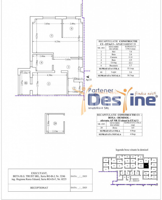 DESTINE IMOBILIARE vă prezintă spre vânzare: ***Apartament 2 camere, direct de la dezvoltator, model Open Space (cartier Pacurari) cu boxa si loc de parcare **Preț: 123.600 EURO(boxa si loc de parcare incluse) Detalii si informatii utile: *Imobil construit in anul 2023 *Suprafață utila totala de 59 MP *Etaj 1 - imobil cu 3 etaje + mansarda *Imobilul este intabulat, mutarea se poate face imediat dupa semnare. Avantajele locuintei: *Loc de parcare *Boxă intabulată aproximativ 5 mp *Dormitor cu iesire pe balcon *GEAM LA BAIE *Orientare spre sud-vest *Blocul este prevazut cu lift si videointerfon. *Exista posibilitatea de a amenaja o a doua baie. Apartamentul face parte dintr-un complex nou, cu toate facilitățile în zonă: grădiniță, creșă, școală etc, numeroase parcuri și spații de joacă pentru copii, diverse magazine și farmacii. Apartamentul are o localizare excelenta in oras, foarte aproape de mijloacele de transport in comun. Apartamentul are centrala proprie prin condensare si incalzire prin pardoseala, inclusiv in balcon. Va propunem spre vanzare mai multe modele de apartamente: * Apartament cu 1 camera cu boxa si loc de parcare Pret incepand de la 87.800 euro * Apartament cu 2 camere cu boxa si loc de parcare Pret incepand de la 122.600 euro *Apartament cu 3 camere total decomandat cu boxa si loc de parcare Pret incepand de la 169.200 euro Pentru vizionări sau informații suplimentare: Link de prezentare: https://destine.immoflux.ro/publicproperty/P4813 Cod ofertă: P4813 IMPORTANT: >>> Brokerul nostru de credite Ofera asistență GRATUITĂ pentru obținerea creditului (ipotecar, Prima Casă, nevoi personale) prin parteneriatele noastre bancare. Contactați-ne pentru detalii! Id intern: P4813