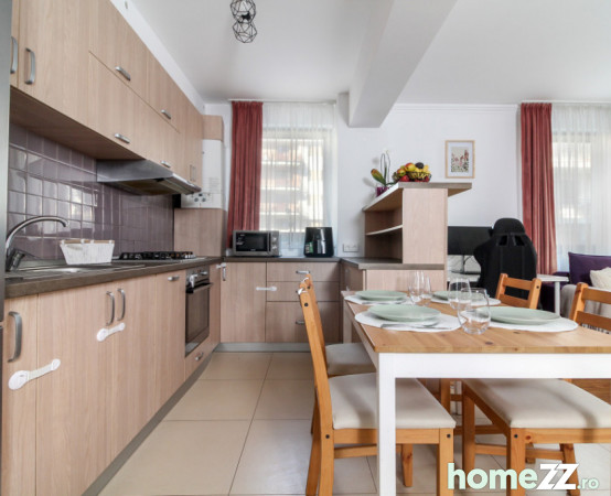 Locuinta este finisata modern, se vinde mobilata si utilata cum este prezentata in fotografii, inclusiv masina de spalat vase, masina de spalat rufe, uscator de rufe, plita, frigider, cuptor, hota, TV. Ferestrele sunt termopan cu profil PVC, incalzirea se face prin centrala termica proprie si dispune de contorizare separata si toate utilitatile - apa, gaz, curent, canalizare.