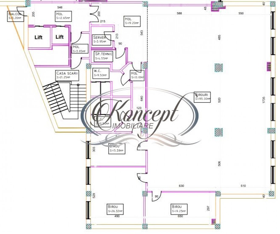 Koncept Imobiliare va ofera spre inchiriere un spatiu de birouri in cartierul Marasti, zona Pietei Marasti situat la etajul 5 intr-o cladire de birouri clasa A certificata BREEAM. Spatiul in suprafata de 382 mp utili, este compus din 5 incaperi, 2 grupuri sanitare, hol, camera tehnica, camera server si balcon de 3 mp. Cladirea dispune de control acces 24/7, partea de management a cladirii care include servicii de securitate, intretinere, curatenie, receptie si administrare cu un cost de 3 euro/mp. Totodata cladirea a fost proiectata în asa fel încat sa vina in intampinarea nevoilor persoanelor cu handicap locomotor. Imobilul dispune de parcari subterane si supraterane, 2 lifturi de masini, care pot fi puse la dispozitie pentru suma de 90 euro+tva / bucata pentru parcarile subterane, si 70 euro+ tva/ bucata pentru cele supraterane, ele fiind repartizate in functie de suprafata utila inchiriata. Se poate opta si pentru cumularea mai multor spatii cu suprafete cuprinse intre 150 si 570 mp per etaj, existand posibilitati multiple de recompartimentare. Recomandam acest imobil datorita pozitiei sale accesibile mijloacelor de transport in comun si a altor puncte de interes, cat si pentru serviciile de calitate oferite pe partea de management a cladirii astfel incat sa se poata pune la dispozitie unele dintre cele mai moderne si confortabile spatii de birouri din Cluj-Napoca. Pentru informatii suplimentare, programarea unei vizionari sau pentru a va prezenta oferta noastra completa, nu ezitati sa ne contactati telefonic, prin e-mail sau la sediul agentiei noastre de pe str. Aviator Badescu nr. 19, Cluj-Napoca. Id intern: P18174