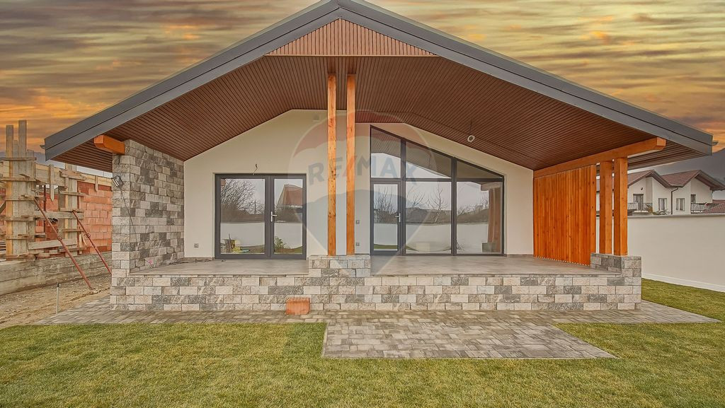 Bună ziua, sunt Zoltan Fejer consultant imobiliar în cadrul biroului Re/max Central și doresc să vă prezint spe vânzare o casă construită pe un singur nivel având un concept inedit. Mergând pe hol, fiecare încăpere, spațiu este gândit și amenajat încât să fie cât mai util pentru viitorul proprietar care va dori să “vină acasă”! Zona de acces în casă este compusă din antreu generos, baia de serviciu și un hol care oferă acces către cele 3 zone gândite să fie cât mai utile. În prima partea a casei, foarte ușor ne putem imagina o zonă de lucru tip home office sau o zonă de birou pentru spiritul antreprenorial. Avansând descoperim primul dormitor de 15,75 mp cu baie proprie cu cabină de duș urmat de zona matrimonială. Aici regăsim un dormitor de 16,62 mp cu acces către terasă alături de un dressing de 7 mp și baie. Camera de zi împreună cu bucătăria au o suprafață generoasă de aproximativ 38 mp utili, practic un open space uriaș și cu acces către terasa acoperită de 24 mp care “ne deschide” curtea din spate! La capitolul detalii tehnice pot spune că excelăm! Avem zidărie din cărămidă poroterm de 25 cm, “îmbrăcați” cu izolație de 10 cm totul sub „decorativă”! Geamurile sunt marca Salamander cu 3 foi de sticlă – 4 sezoane, mari, oferă o lumină naturală excelentă. Încălzirea este în pardoseală, nu ne încurcă calorifere pe lângă pereți, „ajutată” de o pompă de căldură apă-aer marca Daikin de 8 kw, 18 circuite cu 6 termostate. În camera tehnică avem pompă de recirculare a apei calde, stație de dedurizare, boiler de 230L pentru stocare apă caldă dar și bateriile de stocare a energiei de 16 kw conectate la panourile fotovoltaice de 8 kw. Vă invit cu drag la vizionare, să discutăm despre toate detaliile proprietății! Și sigur, detaliem despre, acoperiș, podul care este un uriaș spațiu de depozitare, izolația cu spumă poliuretanică de 20 cm, instalația electrică, sanitară, poarta care va fi automata pentru acces auto dar și despre terenul de 560 mp din care aproximativ 210 mp formează curtea din spate amenajată cu gazon cu sistem de irigare prin aspersie și sistem de drenaj apă pluvială. În colțul din stânga spate regăsim spațiul pentru viitorul dvs grătar, noi aducând apă și curent restul fiind în sarcina dvs! Pentru detalii și vizionare, vă rog să mă contactați telefonic.