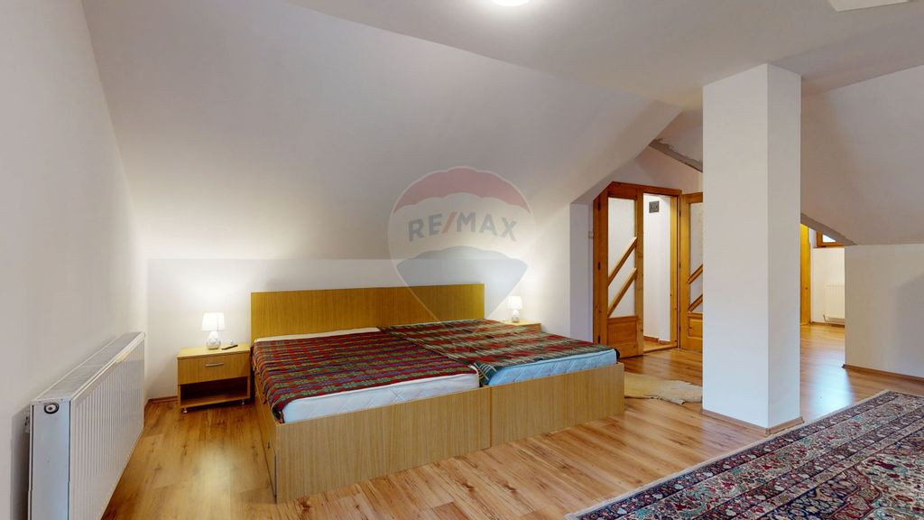Comision 0% | Casă de vacanță în Plaiul Foii | P+E+M | Cadru natural În inima naturii, acolo unde liniștea este întreruptă doar de sunetul pădurii și al râului de munte, îți prezint o casă de vacanță situată în Plaiul Foii, una dintre cele mai frumoase și autentice zone montane din România. Proprietatea este amplasată pe un teren generos de 986 mp, oferind intimitate deplină, singur în curte, fără vecini care să îți invadeze spațiul sau priveliștea. Cadrul este absolut spectaculos: aer curat, peisaj rustic autentic și o priveliște superbă către munți, care îți oferă senzația de libertate și reconectare cu natura în fiecare zi. Este locul ideal pentru: casă de vacanță pentru familie, retreat de weekend departe de agitația orașului sau investiție turistică într-o zonă cu cerere constantă. Parterul este gândit funcțional și elegant, oferind: acces din curte pe două părți, living generos cu zona de dinning, bucătărie, baie, debara,două holuri și CT pentru centrală. Etajul este organizat pentru confort și intimitate: 3 dormitoare fiecare cu baie proprie, două holuri și o cmareă de zi. Mansarda oferă un open space generos, complet locuibil, care poate deveni: lounge privat, birou executive, sală hobby, zonă de relaxare sau spațiu pentru oaspeți, baie, două holuri și spatiu depozitare. Curtea oferă intimitate, funcționalitate și un cadru ideal pentru seri liniștite sau întâlniri cu prietenii. Dispune de locuri de parcare amenajate, spații verzi bine întreținute și o anexă. Detalii financiare: - Investiție : 319.000 Euro - Comision agenție: 0% - Onorariu notarial si taxe OCPI: în sarcina cumpărătorului - Impozit pe venitul generat de vânzare: în sarcina vânzătorului - Moneda tranzacției: EURO/RON la curs BNR Detalii tehnice: - Localizare: Plaiul Foii, Zărnești, jud. Brașov - Singur in curte, 986 mp teren - Nr. camere: 7 - Suprafață utila: 192.2 mp - Dispunere: Parter + Etaj + Mansardă - Număr bai : 5 - Utilități: apă, curent, fosă septică, centrală proprie pe lemne - Mobilată și utilată - se predă conform turului virtual cu excepția obiectelor personale Detalii juridice: Agenția imobiliară RE/MAX Champions Brașov a verificat următoarele documente: - Extrasele de carte funciara - Documentele de dobândire a proprietății - Releveu - Certificat energetic - Documente personale proprietari Având in vedere verificările juridice efectuate, suntem bucuroși sa va informam ca imobilul ce urmează a fi cumpărat este in regula din punct de vedere juridic si este liber de sarcini. Potrivit analizei noastre, nu au fost identificate probleme juridice care ar putea afecta valabilitatea tranzacției. Pentru a înțelege mai bine proprietatea, te invit să parcurgi turul virtual interactiv disponibil in aceasta pagina, din confortul casei tale și să ne suni pentru a programa o vizionare dacă vei considera că ți se potrivește. Cu drag, Echipa RE/MAX Champions