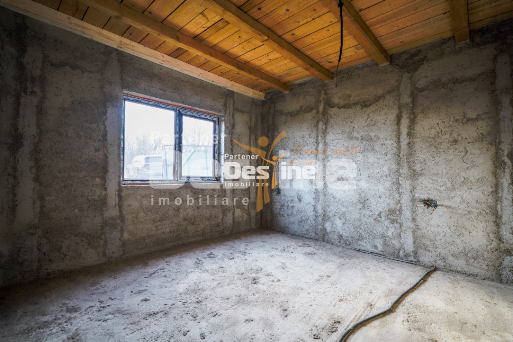 EXCLUSIVITATE – COMISION ZERO % DESTINE IMOBILIARE vă prezintă spre vânzare: Casă individuală LA ROȘU - Ciurea Preț: 74.900 €uro Informatii utile despre proprietate: - Edificată în anul 2024 - Regim de înălțime: P+POD - Suprafață utilă totală de 75 mp - Terasă acoperită de 15 mp - Front stradal: 30 ml Compartimentare: - 2 dormitoare, living deschis cu bucătăria, baie cu GEAM, hol cu acces spre POD, cameră tehnică + magazie de 15 mp UTILITĂȚI: - apă potabilă + puț forat de 28 m (capacitate de 6000 l apă), canalizare, curent electric (in curs de avizare și branșare). Detalii despre contrucție: - fundație din beton armat - Centuri și stâlpi din beton armat (vizibili) - Zidărie din BCA + tencuială interioară - Precablare instalație electrică - Terasă din grinzi de lemn, acoperită cu tablă - Acoperiș din tablă tip Lindab - Tâmplație din PVC cu geam termopan - POD mansardabil Beneficiile casei visurilor tale: - Avantajul tău este că nu trebuie să accepți gusturile altcuiva. Îți alegi singur finisajele interioare, tâmplăria și culorile. - Transformă această casă în căminul tău ideal, alegând finisajele care te reprezintă, fără a fi nevoie să strici sau să refaci nimic. - Fără vicii ascunse sub tencuială. Poți verifica integritatea structurii și calitatea materialelor folosite, având garanția unei construcții solide. - Achiziționezi la un preț avantajos și îți gestionezi bugetul de amenajare în propriul ritm, investind exact în materialele pe care le dorești. - Ești la doar 15 minute de oraș, dar te bucuri de liniștea deplină a naturii. Locația ideală cu o priveliște panoramică superbă asupra releului din BUCIUM. Nu lăsa pe mâine, ce poți cumpăra astăzi. Ești la o vizionare distanță de casa visurilor tale. Cod ofertă: P -4838 !!!Obține creditul dorit mai simplu ca niciodată!!! Nu mai alerga pe la toate băncile. Noi facem treaba în locul tău, absolut GRATUIT. Primești asistență personalizată de la dosar până la aprobare, indiferent de tipul de credit ales. Economisește timp și bani. Contactează-ne acum pentru o analiză gratuită! Id intern: P4838