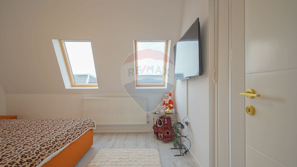 Vă propunem spre vânzare, în sistem de reprezentare exclusivă și cu COMISION 0% din partea cumpărătorului, o casă contemporană situată în cartierul Izvor, într-un cadru natural și liniștit, la doar câțiva kilometri de Brașov. Casa este amplasată pe un teren de 256 mp, având o curte libera de 120 mp, perfectă pentru relaxare și petrecerea timpului în aer liber. Detalii proprietate: - Structură de lemn cu izolație eficientă din Vata bazaltica, polistiren si rigips. - Suprafață utilă: 90 mp - Teren: 256 mp (curte liberă de 120 mp) - Totul este nou, atat constructia cat si tot ce este in interior. Compartimentare: - Parter (45,4 mp): - Living + bucătărie open space - Baie de oaspeți - Cameră tehnică - Terasă deschisă cu geamuri glisante, care oferă acces direct către curtea amenajată Mansarda (45 mp): - 2 dormitoare (unul cu dressing propriu și feronerie Velux, celălalt cu priveliște superbă către natură) - Cameră transformată în dressing - Baie elegantă cu cadă - Hol cu mașină de spălat Dotări exterioare: - Curte amenajată cu beton amprentat de calitate superioară - Foișor cu zonă de BBQ - Magazie spațioasă pentru depozitare - Terasă supraetajată, unde pot fi amplasate 2 șezlonguri pentru a vă bucura de priveliște - Loc de parcare pentru două mașini în fața casei Utilități: - Încălzire prin pompe de căldură - Apă, curent electric, fosă septică, internet Izvor este o zonă rezidențială liniștită, aflată la doar câțiva kilometri de centrul Brașovului, ideală pentru cei care caută confort și natură. Cartierul Valea cu Flori se distinge printr-o comunitate prietenoasă, aer curat și acces rapid la facilități esențiale. În apropiere, găsești oportunități de drumeție și recreere, iar peisajele din jur sunt perfecte pentru relaxare. Proprietatea se vinde complet mobilată și utilată, fără a necesita alte investiții. Casa este perfectă pentru cei care caută un cămin modern, cu un design elegant și facilități complete. Modalitati de plata: Atat din surse proprii cat si prin credit bancar. Pentru mai multe detalii sau pentru a stabili o vizionare, nu ezitați să mă contactați!