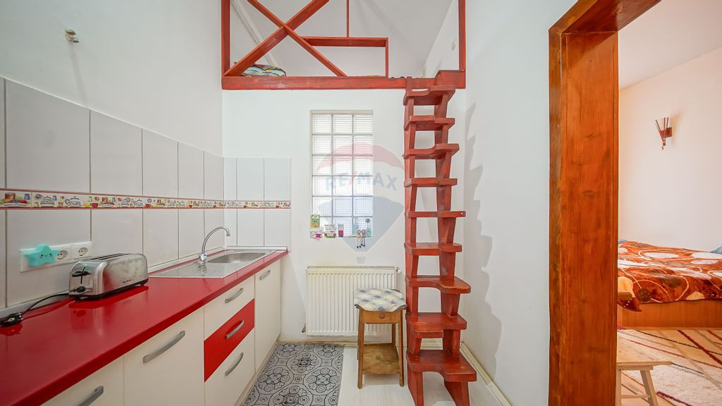 Vă propunem spre vânzare, în sistem de reprezentare exclusivă și cu comision 0% pentru cumpărător, o garsonieră situată în Centrul Istoric al Brașovului, pe strada Matei Basarab nr. 31, într-o zonă de case, apreciată pentru liniște și farmecul specific. Proprietatea este amplasată la parterul unei case și are o suprafață utilă de 31 mp, fiind o alegere potrivită atât pentru locuire, cât și pentru investiție în regim de închiriere. Compartimentarea este semidecomandată și include o cameră luminoasă, bucătărie și baie cu geam pentru aerisire naturală. Datorită înălțimii generoase a încăperilor, a fost amenajat un spațiu tip mezanin, utilizat ca zonă de dormit, ceea ce oferă o organizare mai eficientă a spațiului și un plus de confort. Garsoniera a fost renovată integral în anul 2016, fiind înlocuite instalațiile electrice și sanitare, precum și tâmplăria, astfel încât viitorul proprietar se poate bucura de un spațiu funcțional, pregătit pentru utilizare imediată. Confortul termic este asigurat de centrala proprie pe gaz. Unul dintre avantajele importante ale acestei proprietăți este curtea comună (teren total 541 mp), un spațiu generos pentru relaxare în aer liber. Curtea este împărțită cu doar doi vecini, oferind un plus de intimitate și liniște. Poziționarea este foarte bună, la aproximativ 1,6 km de Piața Sfatului, cu acces rapid către centrul istoric și principalele atracții ale orașului. AFI Brașov se află la aproximativ 1,1 km, iar în apropiere se găsesc restaurante, magazine, mijloace de transport în comun și alte facilități urbane. În plus, proximitatea râului Timiș contribuie la atmosfera plăcută a zonei. Datorită amplasării și caracteristicilor sale, proprietatea este potrivită pentru o persoană singură, un cuplu sau pentru cei care caută o investiție într-o zonă cu cerere constantă pentru închiriere. Achiziția se poate realiza atât din surse proprii, cât și prin credit ipotecar sau prin programul „Noua Casă”. Pentru mai multe detalii, vă stăm cu plăcere la dispoziție!