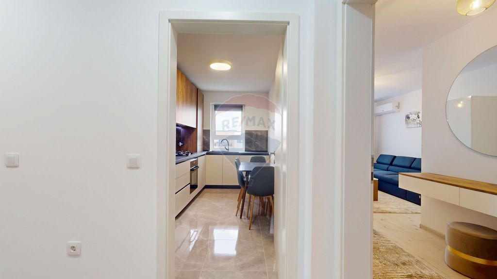 Apartament modern cu 2 camere, recent predat și aflat la prima închiriere, ideal pentru cei care își doresc un spațiu nou și primitor. Mobilat complet cu mobilier nou, atent ales pentru confort și funcționalitate. Situat la etajul 10, oferă o priveliște deosebită și multă lumină naturală. Dispune de aer condiționat, asigurând confort pe tot parcursul anului. Un cămin perfect pentru un nou început. Avantaje: loc de parcare inclus zonă liniștită, cu acces rapid către mijloace de transport în comun aproape de magazine, școli și alte puncte de interes centrală termică proprie Detalii financiare: Chirie: 550 Euro Comision agenție: 0% Garanție: contravaloarea unei luni de chirie Impozit pe venitul generat de închiriere: în sarcina proprietarului Moneda tranzacției: EURO. Detalii tehnice: Suprafață utilă: 53.80 mp utili + Balcon ( 5) Etaj: 10/10 Compartimentare eficientă și decomandată Se închiriază complet mobilat și utilat Centrală termică proprie Fără animale de companie Detalii juridice: Nu există impedimente legale privind închirierea Disponibilitate: imediat, de la semnarea contractului Vizionările se fac pe bază de programare, cu minimum 24 de ore înainte. Cu drag, Echipa RE/MAX Champions