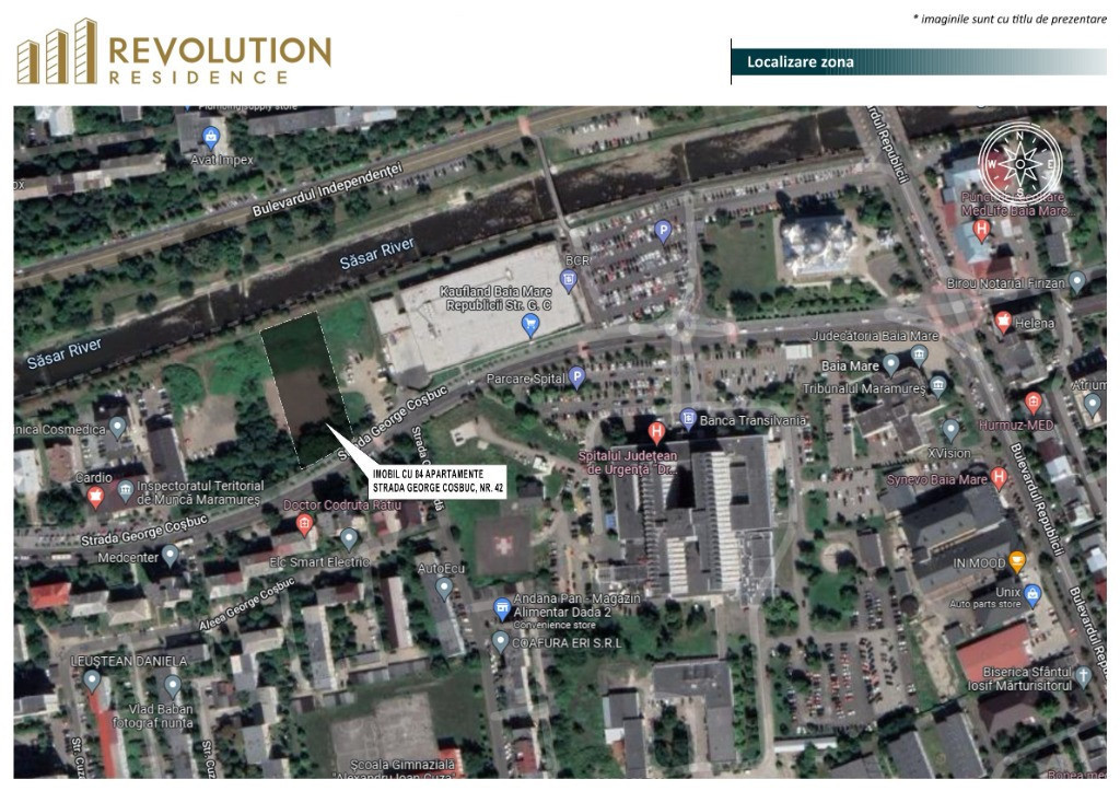 Complex Rezidential George Cosbuc 42, Baia Mare - Spatii comerciale, administrative si birouri de vanzare Activitatea dvs. profesionala va avea un inceput bun prin achizitia unuia dintre spatiile noastre care s-au facut la standarde Europene Locatia Str. George Cosbuc 42. Detalii proiect : - imobil cu regim de inaltime S+P+8E - fațadă modernă din sticlă, de tip cortină, cu izolație termică și fonică avansată, protecție superioară împotriva intemperiilor, deschideri batante și un coeficient UV ridicat, totul integrat într-un design contemporan impresionant. - locuri de parcare exterioare - locuri de parcare subterană - orientare sudică și vestică, ce oferă lumină naturală din abundență pe tot parcursul zilei și contribuie la un cost redus de încălzire și întreținere - boxe de depozitare spațioase, pentru o organizare eficientă a bunurilor - lift de ultima generatie - acces foarte usor la mijloacele de transport in comun - dispune de toate utilitatile necesare, fiind contorizat separat - suprafete cuprinse intre 62 mpc si 416.9 mpc Facilitati zona: - Supermarket Kaufland, cca 50 m - Euromedica Hospital, cca 20 m - Vivo Mall, cca 150 m - Spitalul de urgență Dr. Constantin Opriș, cca 100 m - Palatul de Justiție, cca 150 m - Farmacii, cca 50 m - Stații de alimentare PECO, cca 100 m - Restaurante, cca 200 m - Culte religioase cca 200 m Pret 1700 Euro mpc + TVA, care se va aplica conform normelor in vigoare. Pentru mai multe detalii, ne puteti contacta la numarul de telefon 0372.477.477 0774.049.796