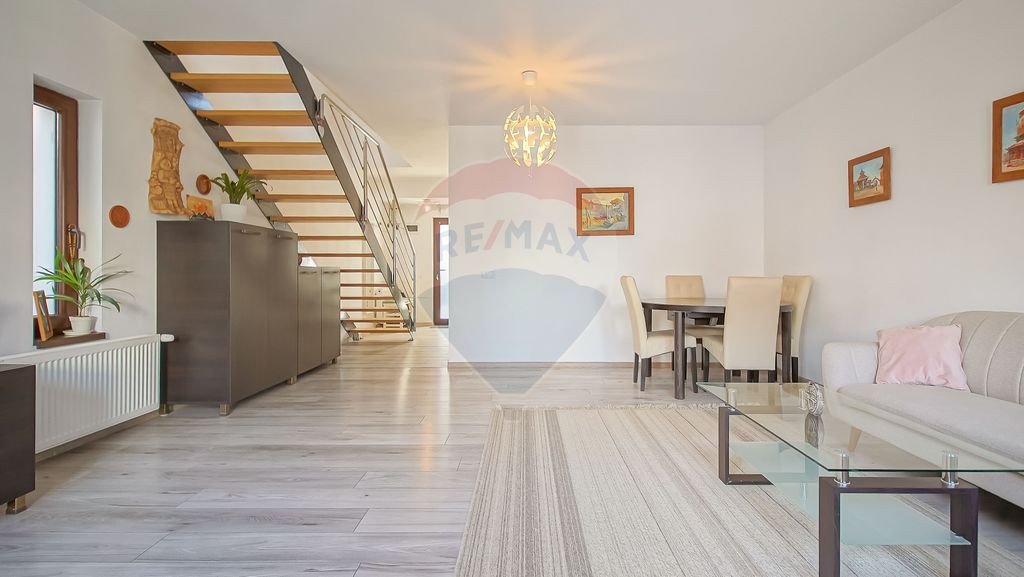 Casă individuală cu 4 camere, garaj și curte proprie – zona Bartolomeu, Brașov Vă propun spre vânzare o casă individuală situată în zona Bartolomeu, într-o zonă liniștită, potrivită pentru o familie care își dorește confort și intimitate. Proprietatea este construită în 2019, este dispusă pe parter + etaj și are o suprafață utilă de 103 mp, amplasată pe un teren de 253 mp, cu curte proprie. Compartimentare: Parter: living spațios bucătărie închisă baie ieșire către terasă și curte Etaj: 3 dormitoare (unul dintre dormitoare are balcon) baie În exterior regăsim curtea amenajată, terasă pentru relaxare și garaj. Casa beneficiază de toate utilitățile și se vinde complet mobilată și utilată, exact ca în fotografii, fiind pregătită pentru mutare imediată. Pentru mai multe informații sau pentru programarea unei vizionări, vă stau cu drag la dispoziție. Răzvan Badea Consultant imobiliar RE/MAX Evolution
