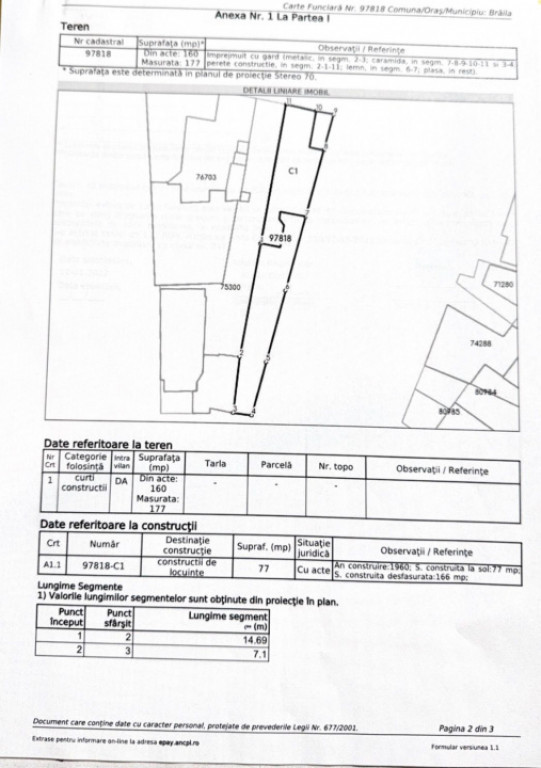 OFERTA CU 0% COMISION DIN PARTEA CUMPARATORULUI - Agentia Mustata Imobiliare . - Casa Parter plus Etaj, Strada Scolilor nr 5. Regim de inaltime Subsol / Parter/ Etaj. - Avem placerea de a va prezenta spre vanzare un imobil deosebit, amplasat intr-una din cele mai apreciate zone ale orasului Braila. Pretabila dupa achizitie, atat pentru locuinta personala sau inchiriat, cat si pentru o activitate comerciala: cabinete sau birouri diferite activitati. - La parter sunt doua camere, hol si bucatarie, la etaj 2 camere, doua balcoane, baie; iar sub camerele de la parter exista alte doua camere tip demisol cu acces separat din curte. - Amprenta la sol 77mp, suprafata construita desfasurata 166mp. - Suprafata terenului este de 160mp din acte(masurata 177mp), deschiderea stradala 6metri, iar imobilul este racordat la toate utilitatile. - Constructia este din caramida. Constructie 1950 - 1960. - Pizitionarea este intre Calea Calarasilor - Restaurant Heavens si Str Ana Asla - Bireica Sf Nicolae. . -Pentru vizionari contactati-ne la numarul de telefon 0770 111 333 sau la sediul agentiei pe Calea Calarasilor 53, bl. 2 bis parter vizavi de Restaurant Continental. Id intern: P255218