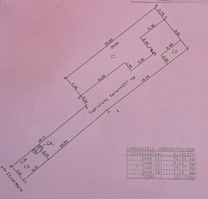 Reprezentare EXCLUSIVA - COMISION ZERO! Casa individuala cu toate utilitatile in zona Centrala, ZONA EXCELENTA - str. Stefan cel Mare (foarte aproape de Calea Calarasilor). Suprafata totala teren 257 mp, deschidere stradala de 3,41 metri (garaj 19.77 MP), iar latura din spate 9,56 mteri. Constructia este din caramida/boltari si este compusa din 3 camere, bucatarie, baie cu aerisire cu geam, hol. Al doilea corp de cladire reprezinta o bucatarie de vara si camara. Centrala termica pe gaz, tamplarie exterior-interior PVC, pereti izolati termic, faianta, gresie, parchet. Foarte bine intretinuta! Oferta prezentata in Reprezentare Exclusiva de catre Agentia Mustata Imobiliare - Comision Zero Cumparator. Id intern: P229361