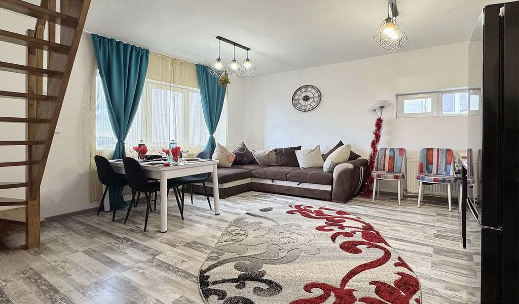LOCALIZARE: Acest imobil este situat in zona Garii, in imediata apropiere a Salii Sporturilor, Scolii Gimnaziale nr. 19, Garii Brasov, zona beneficiind de numeroase magazine, supermarket-uri, sali de fitness, farmacii, parcuri, etc. COMPARTIMENTARE: Proprietatea este dispusa pe doua nivele, fiind pozitionata la etajul 5+M, cu urmatoarea compartimentare: PARTER: - Zona de zi, in care este inclusa bucataria de tip open space si din care se face accesul catre mansarda; - Bucataria, deschisa, aceasta fiind mobilata si dotata, cu plita, cuptor, hota, frigider, etc.; - Baia, cu aerisire naturala si cada; MANSARDA, care este alocata zonei de noapte, astfel: - Dormitoarele, ambele beneficiind de suprafete generoase si aerisite; DOTARI: - centrala termica; - tamplarie PVC, cu geam termopan; - usa metalica; - semineu electric. Tranzactionarea proprietatii se va face cu mobilierul aferent prezentei ofertari. Imobilul este situat intr-o zona de blocuri, accesul auto, pana la zona de centru a orasului, facandu-se in cca. 6 minute. ATRACTII ZONA: Magazine, restaurante, parcuri, școli, spitale. ACCESIBILITATE: Transport public în apropiere. FORMA ACHIZITIONARE: Se accepta plata prin accesare credit. NOTA: Informatiile prezentate reflecta situatia reala a proprietatii, fara a constitui o oferta contractuala. Aceste date au fost obtinute verbal, de la titularul de drept al imobilului. Structura acestei prezentari nu poate fi reprodusa, fara acordul scris al The Seller and Partners.