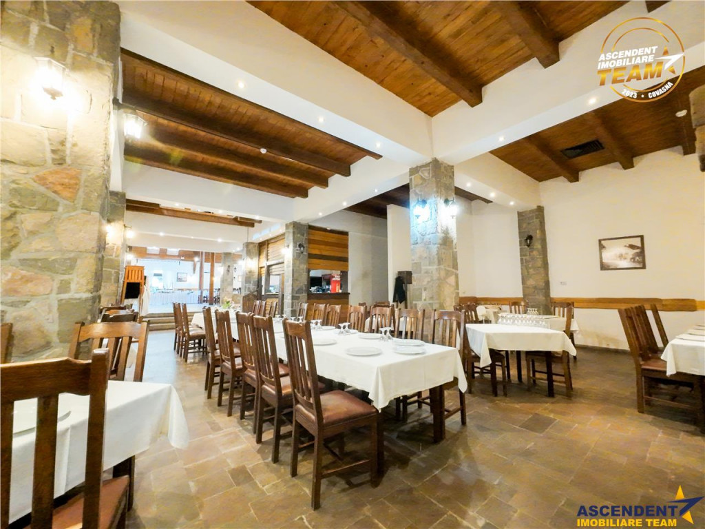 Comision cumparator: 0 % ASCENDENT IMOBILIARE COVASNA este onorata sa va prezinte spre vanzare Complex Gastronomic Premium situat intr-un cadru idilic, inconjurat de castani seculari, care creeaza o atmosfera unica de poveste. O prima sectiune este materializata printr-un apreciat restaurant traditional secuiesc. O alta componenta, alaturi de afacerea la cheie, este o pretioasa carmangerie traditionala, menita sa completeze experienta culinara oferita clientilor si nu numai. Va invitam sa experimentati o vizionare initiala, din locatia unde va aflati, chiar acum, prin accesarea turului virtual si a filmului de prezentare: Exploreaza Virtual: https://my.matterport.com/show/?m=hkiNBVp5ftR Film prezentare:https://www.youtube.com/watch?v=OH-fURfX0Ow Restaurantul este amenajat in stil autentic secuiesc, cu detalii rustice, mobilier din lemn masiv si elemente decorative locale, oferind o atmosfera traditionala deosebita. Terasa spatioasa, amplasata sub umbra generoasa a arborilor seculari, creeaza un spatiu relaxant, ideal pentru evenimente speciale. In cadrul proprietatii functioneaza si o carmangerie dotata cu echipamente moderne, unde sunt preparate produse traditionale dupa retete autentice. Capacitatea totala ajunge la 600 de locuri, dintre care 280 sunt disponibile in interior, iar 320 pe terasa. Bucataria este mobilata si accesorizata la standarde actuale. Spatiile de depozitare sunt generoase, alaturi de o parcare bine dimensionata si un acces facil. Locul de joaca amenajat ofera un spatiu sigur si atractiv, unde cei mici se pot bucura de momente de distractie si aventura intr-un cadru prietenos si bine echipat. Situat intr-o zona cu un potential turistic ridicat, acest loc atrage atat clienti locali, cat si vizitatori. Business-ul este complet operational, beneficiind de un public fidel si apreciere constanta reflectata in recenzii excelente. Posibilitatea de organizare a evenimentelor tematice, degustarilor si atelierelor culinare contribuie la diversificarea experientei oferite. Totodata, promovarea produselor proprii din carmangerie poate duce la o crestere semnificativa a activitatii. Intr-un cadru natural unic, fiecare vizitator are parte de momente memorabile si autentice. Desigur, particularitatile acestei oportunitati comercial-investitionale invita la o cunoastere detaliata! Invitam colegii la colaborare: onoram agentul/agentia partenera cu onorariul aferent! Consilier dedicat alesei oferte: domnul Lorincz Lehel Telefon/WhatssApp: 0723 369 607 Detalii, fotografii suplimentare, precum si alte variante similare exclusive: www.ascendentimobiliare.ro