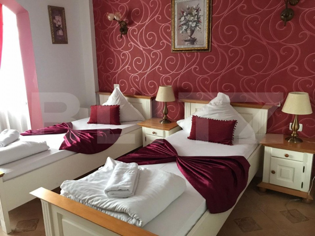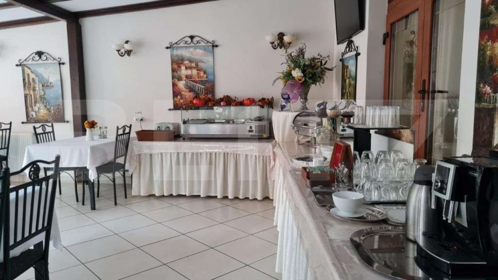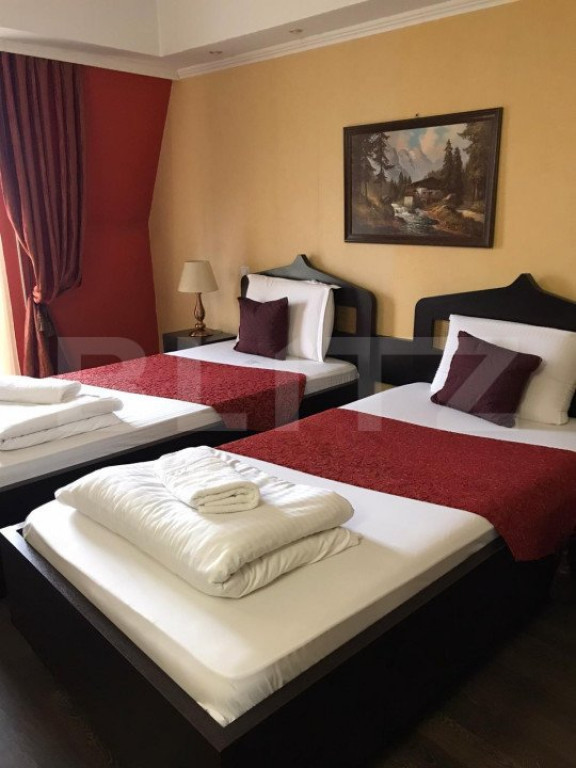 Complexul este situat in Timisoara, in partea de vest a orasului, intr-o zona lininstita cu doua fronturi stradale, ambele cu loc de parcare pe toata lungimea frontului stradal. Complexul pune la dispozitie doua case, ambele cu doua apartamente si curte tip gradina, hotelul si o pensiune cu gradina. Intre cele doua strazi se afla o gradina cu cascade si fantani arteziene, foisoare si un pavilion lung pentru evenimente cu capacitate maxima de aproximativ 100 de persoane. Capacitatea de cazare este: - 15 camere fiecare cu specificul unei tari - 9 apartamente Capacitate restaurant: -160 de locuri la mesele din interior -150 locuri pe terasa Constructiile: - Hotel 670 mp utili (parter+ 3 etaje+ pod) - Pensiune 300 mp utili (subsol+parter+2 etaje) - Casa 1 330 mp utili (parter+ 1 etaj) - Casa 2 180 mp utili (parter+pod) Incalzirea se face cu 5 centrale termice pe gaz, fiecare imobil este racordat separat la apa curenta, are si foraj la 120m adancime, sistem de supraveghere video, racire aer in camere cu chiller centralizat, internet+telefon in fiecare camera. Afacerea se vinde la cheie! Cod ofertă / ID BLITZ: P6811 Id intern: P6811