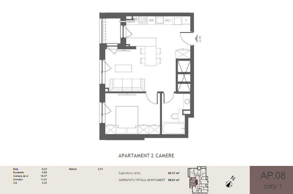 Suprafața utilă 43 m²