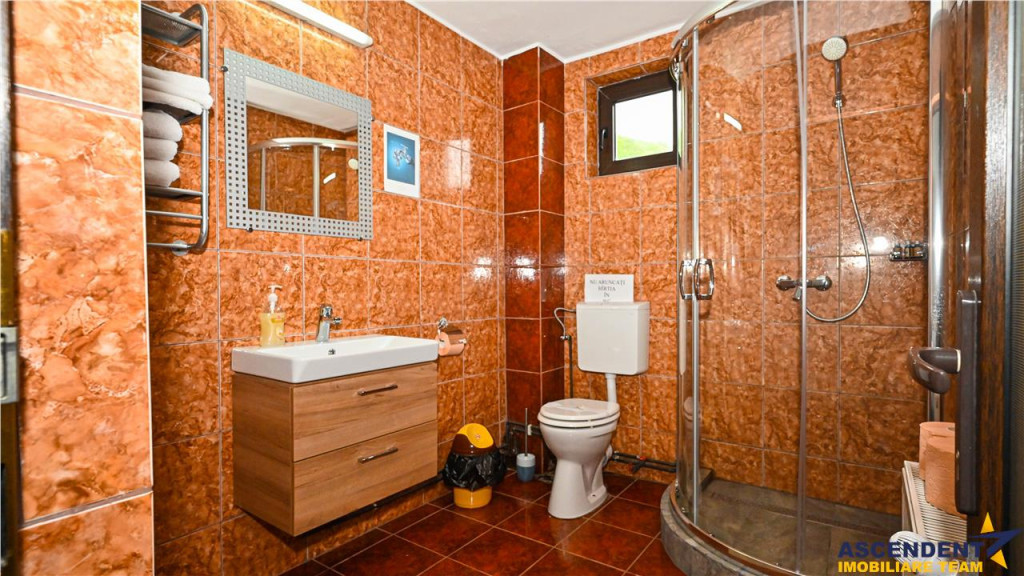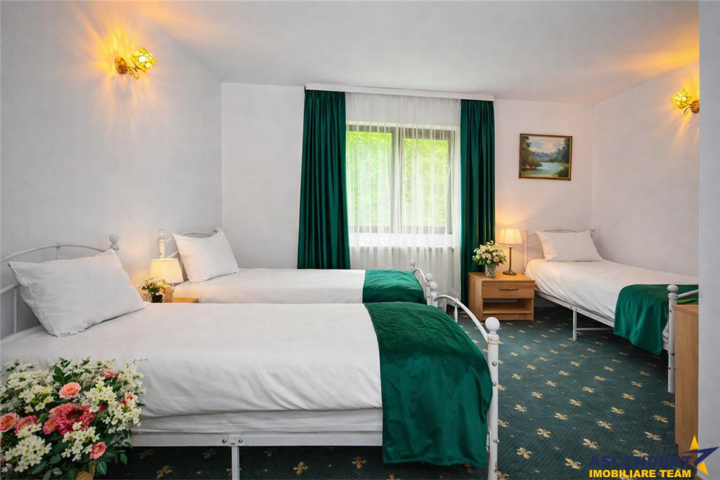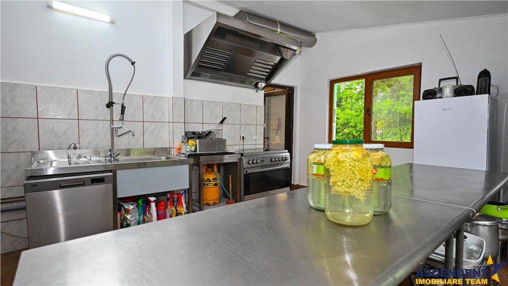 Comision 0% la cumparator ASCENDENT IMOBILIARE BRASOV, ofera spre vanzare un complex turistic cu traditie, aflat in circuit din 2007, situat in Rezervatia naturala Piatra Craiului, mai exact pe superbul drum spre Plaiu Foii. Cu vedere panoramica la creasta Pietrii Craiului, intr-un peisaj natural de exceptie, complexul este destinatia ideala petru turism montan, dar si pentru concedii de relaxare sau team buiding. Renovat integral in 2023 complexul are eficienta energetica de ultima generatie: Prosumator cu panouri fotovoltaice de 15 KW invertor 5 panouri solare pentru apa calda pompa de caldura Generator de backup pentru siguranta In mijlocul unui teren amenajat de 7700 mp, structura complexului se prezinta astfel- Vila pensiune Parter - sala de curs, salon, sala de mese, bucatarie, 2 bai - centrala noua Etaj 1 - 5 camere cu bai proprii si 3 balcoane Etaj 2 - 3 camere 1 apartament, toate cu baie proprie Vila 2 - incalzire cu pompa de caldura si cenrala pe lemne Living, bucatarie, 2 bai, 3 dormitoare Vila 3 4 camere, 2 bai, garaj de 100 mp, spati depozitare Ca utilitati mentionam- 3 surse de curent = a)de la reteaua nationala, b) sistem fotovoltaic 15 kw c)generator diesel 10KVA 2 surse de apa de la 3 fantani si un izvor- capacitate de stocare 3 tone 2 surse apa calda - instalatie solara cu tuburi vidate si centrale pe lemne Dotari - sistem supraveghere,internet, cablu TV, detectoare incendiu. Suplimentar mai sunt avem o magazie de combustibili si depozitare materiale. Fiind un complex cunoscut si integrat in circuitul turistic, investitia se poate prelua ca o afacere la cheie. Consilier specializat pe aleasa oferta: doamna Lucia Demco Telefon/ WhatsAp: 0720689222 Detalii, fotografii suplimentare si alte oferte similare exclusive: www.ascendentimobiliare.ro