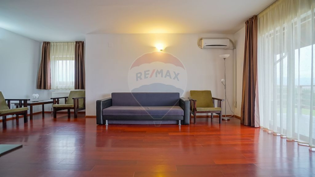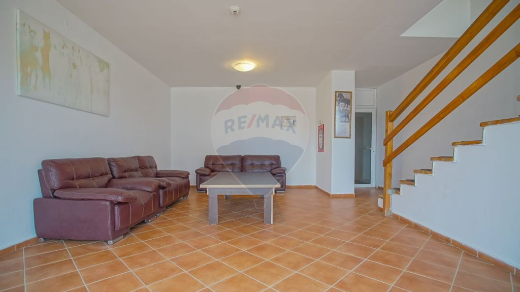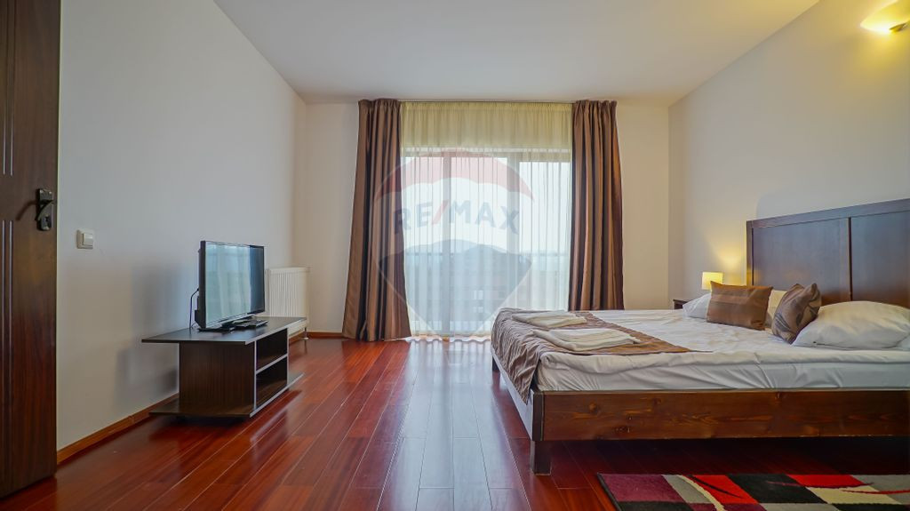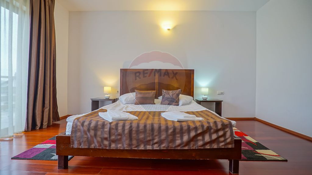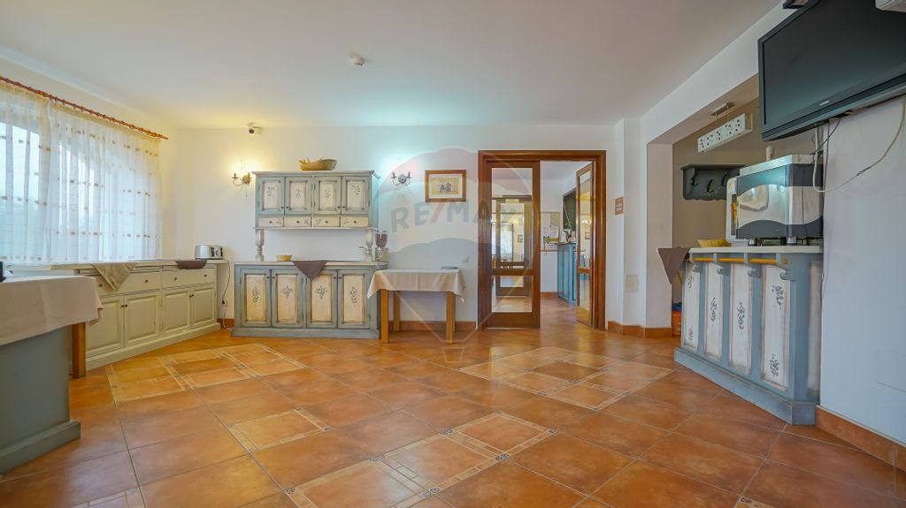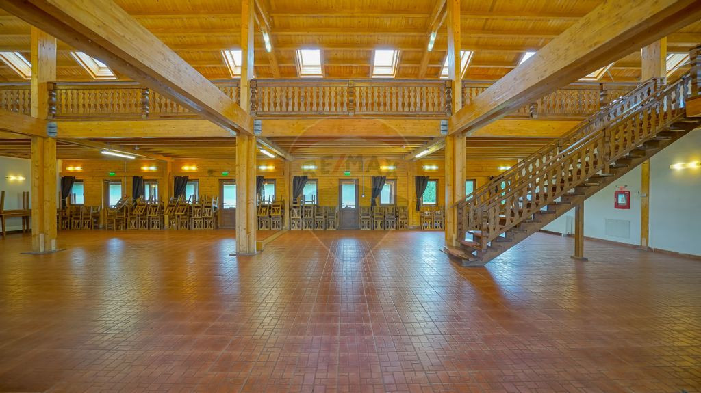 Vă prezint spre vânzare: Complex turistic Panicel, amplasat pe DN 73A Brașov-Bran la 2 Km de orașul Rașnov și la 0,5 km de Drumul Național, pe un drum de țară accesibil pe toată durata anului. Se află la 7 km de Bran, 9 km de Poiana Brașov precum și în apropierea Cetății Medievale Rașnov. Panicel se găsește pe un domeniu de peste 7 Ha, oferind o minunată priveliște asupra Munților Bucegi, Piatra Craiului și Postăvarul, domeniul reprezentând un loc ideal de refugiu de aglomerația urbană. Domeniul pe care se află nu are vecini apropiați și este împrejmuit și păzit 24 h din 24. Indiferent că doriți doar clipe de liniște sau relaxare, o plimbare cu trăsura sau chiar cursuri de echitație cu un instructor autorizat, toate le puteți găsi la Panicel. Dintre facilitățile și serviciile oferite de Panicel putem enumera: salon de servirea mesei cu bar dotat cu mobilier din lemn masiv, șemineu, instalație audio, saună, terasă, foișor, loc de joacă pentru copii, internet wireless, sală de conferințe, salon fumători, tenis de masă, biliard, ping-pong, darts - dotat și cu bar și parcare păzită. Dar cum celor care vin la noi le place să se relaxeze, vă invităm să alegeți una din cele 65 de camere confortabile ale complexului nostru turistic, una din cele două săli multifuncționale unde puteți să vă jucați după pofta inimii (darts, tenis de masă, table, biliard etc). Pentru pasionații pescuitului avem o veste bună. Un lac artificial, plin cu pești, vă stă la dispoziție. Iar după câteva ore de stat cuminte pe marginea lacului, câteva minute de călărie sunt binevenite. Complexul turistic Panicel se întinde pe o suprafață de 71588 mp, având 3 unități de cazare cu o suprafață utilă de 2950 mp și un total de 65 de camere, restaurant cu 160 locuri, sală de evenimente cu o capacitate de 400 de locuri, manej cu o suprafață de 1841 mp, construit în 2011, grajd vechi, restaurat integral, manej exterior, parcare pentru 100 mașini și 10 autocare, 2 lacuri artificiale și un lac natural de 2800 mp, pe râul Panicel. Complexul se vinde mobilat și utilat complet pentru pensiune și organizare evenimente. Practic, se vinde un business la cheie, care ii va genera venituri noului proprietar, imediat după transferul de proprietate. Din 2021 exista finalizata o piscina exterioara de 200 mp si un spatiu special, nou amenajat, pentru campare rulote. Clasa energetica: B Consum anual specific de energie: 130,14 kWh/m2an Indice de emisii echivalent CO2: 34,14 kgCO2/m2an Consum anual specific de energie din resurse regenerabile