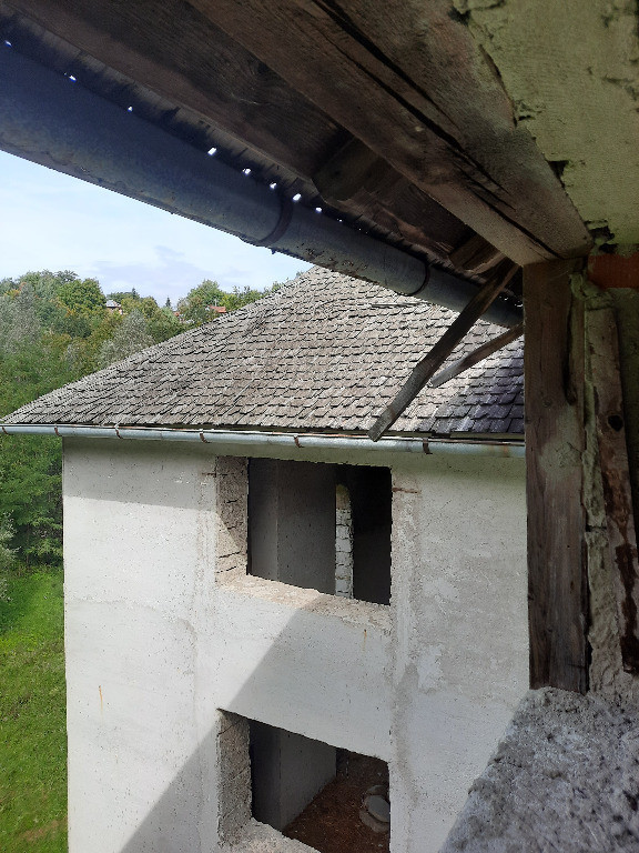 - Acoperisul este de tip sarpanta, construit din lemn, cu invelitoare din sindrila;