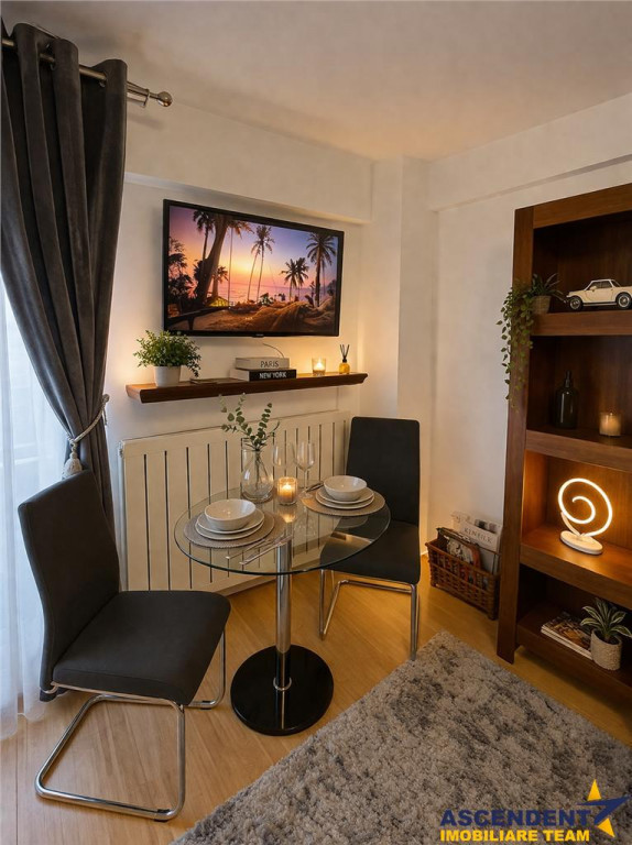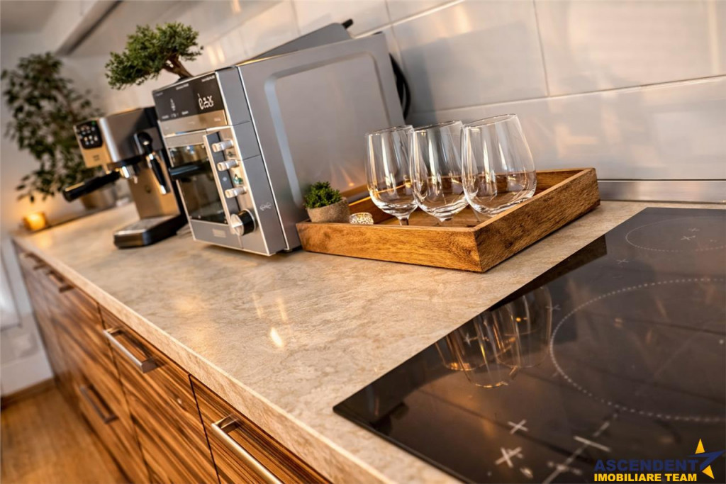 Comision cumparator: 2% TVA, din valoarea de tranzactionare Apartament tip studio, mobilat si utilat premium, situat in Centrul Vechi al Brasovului, intr-o zona turistica de maxim interes, recomandat atat pentru locuit, cat si pentru investitie. Amplasat intr-un condominiu nou, construit in 2013, intr-o zona de case, linistita si exclusivista, proprietatea ofera un echilibru foarte atractiv intre confort, intimitate si acces rapid catre tot ce este important in oras. Locuinta are 32 mp, compartimentare open space, este luminoasa, eficient organizata si beneficiaza de orientare S-E, spre Tampa. Se vinde mobilata si utilata, cu finisaje premium, dotari moderne si electrocasnice de calitate, multe achizitionate recent. Dispune de boxa la subsol, lift, acces securizat cu videointerfon. Prin pozitie, prezentare si nivelul dotarilor, acest apartament este o alegere pentru cei care cauta o proprietate cocheta, bine plasata si usor de valorificat imediat. Detalii, fotografii suplimentare si alte oferte similare exclusive: www.ascendentimobiliare.ro