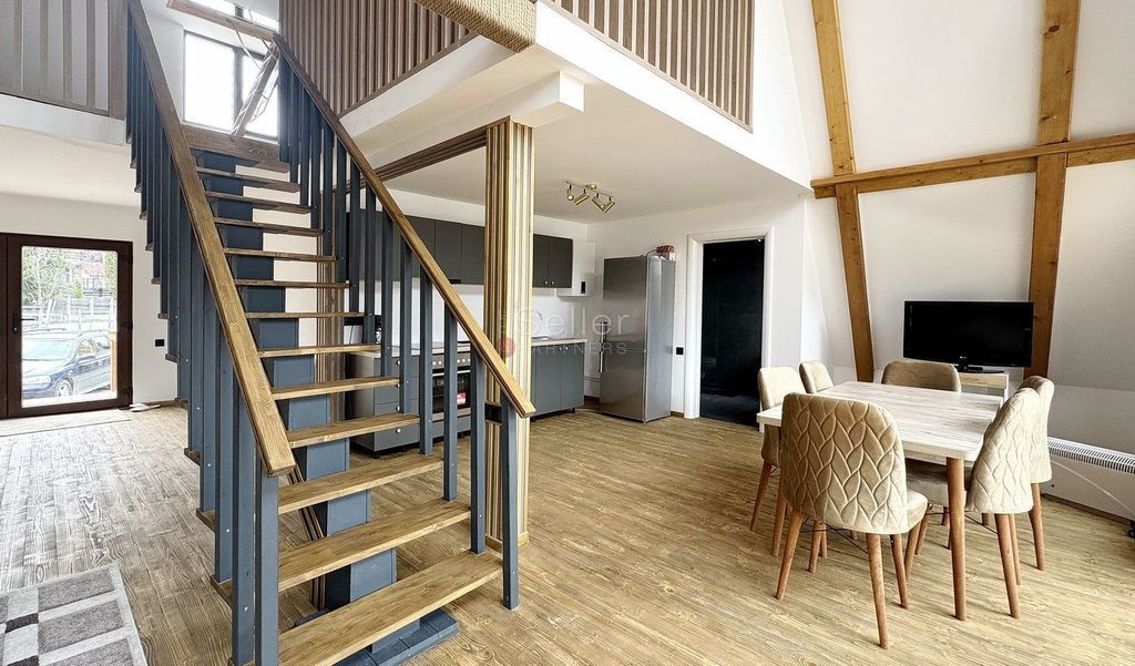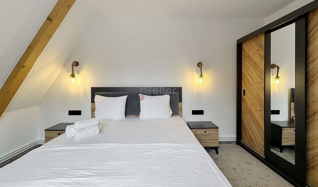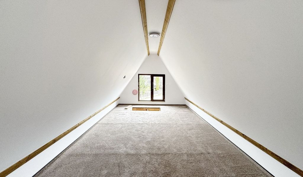 Ati accesat un imobil situat in Bran zona Predelut. LOCALIZARE: Proprietatea este localizata in Zona Predelut, renumita pentru peisajele sale pitoresti, pe care le ofera. DATE TEHNICE: Proprietatea este compusa din 2 unitati tip A-Frame, amplasata pe o suprafata de 2100 mp de teren, construite in 2025, pe structura de lemn. Prima are o suprafata construita desfasurata de aprox 300mp compartimentata pe Parter+ Etaj+Mansarda, astfel: - Parterul este impartit in zona de zi, caracterizata de un living openspace cu bucataria ce are acces spre terasa generoasa cu vedere catre munti; un dormitor si baia amenajata cu cabina de dus; - Accesul la etaj se face pe scara interioara si caracterizat de un dormitor si baia sa propie cu cada; - Accesul la mansarda se face pe scara rabatabila si este tip openspace; Cea de a doua unitate A-frame este dispusa pe parter si mansarda, astfel: -Parterul este alcatuit din living, baie si bucatarie openspace; -Acesul la mansarda se face pe scara interioara, iar aceasta este compartimentata in dormitor; Proprietatea este in lucru pentru cel de al doilea A-frame, iar vanzarea include toate finisajele si mobilierul aferent, zona amenajata cu jacuzi, si foisor cu spatiu pentru barbeque. Imobilul este racordat la: gaz, gurent, apa, foasa septica, internet.. DOTARI: - constructie de lemn, izolata interior si extrior cu vata bazaltica; - centrala termica pe gaz; - curte cu piesagistica; - tamplarie PVC, cu geam termopan; AVANTAJE: - Imobilul se tranzactioneaza in varianta mobilata; - Priveliste frumoasa, spre zona munti; - Finisaje de buna calitate; IMPREJURIMI: Imobilul este situat intr-un peisaj pitoresc, cu verdeata din abundenta, aproape de obiectivele de interes ale statiunii dar, totusi, departe de agitatia specifica acesteia. Accesul auto, pana la zona de centru a statiunii, se realizeaza in 3 minute iar, pana in centrul Brasovului, in 30 minute. Suprafata generoasa de teren permite extinderea numarului de A-frame. Comision Intermediere 2% + TVA. Pentru detalii suplimentare, va rog sa folositi datele de contact afisate.