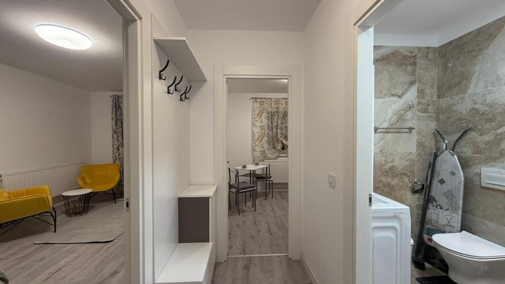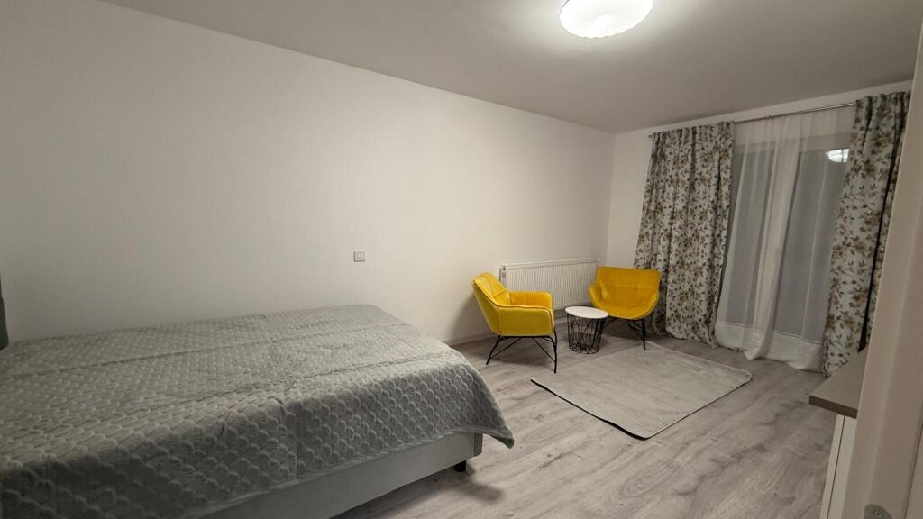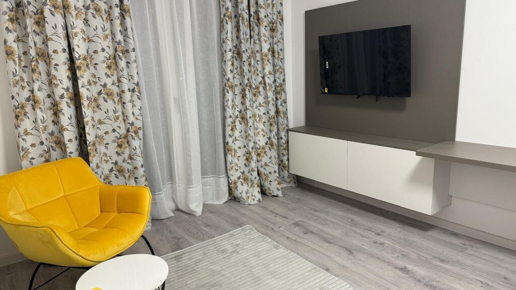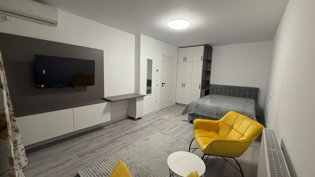 In cadrul complexului Poitiers Towers, apartament cu o camera decomandat, la et 5 din 9, cu o suprafata utila de 38 mp, camera spatioasa cu iesire in balcon. Apartamentul este complet mobilat si utilat, inteligent (smart home) controlat din aplicația telefonului mobil. - control acces intrare complex - videointerfon - aer condiționat în dotarea standard a apartamentului - tâmplarie premium cu pachet tripan - baie complet mobilată și utilată - gresie, faianță și parchet de import - fibră optică în interiorul apartamentului - uși intrare antiefracție și rezistente la foc Apartamentul se vinde cu preluare chiriasi.