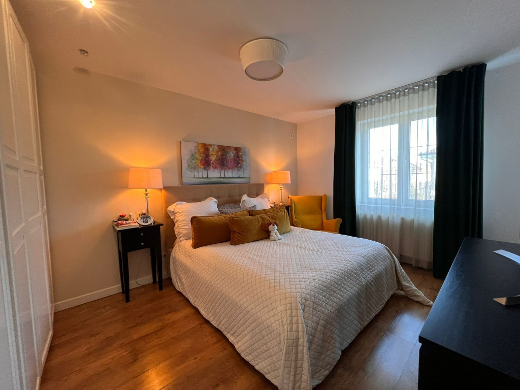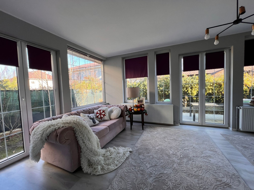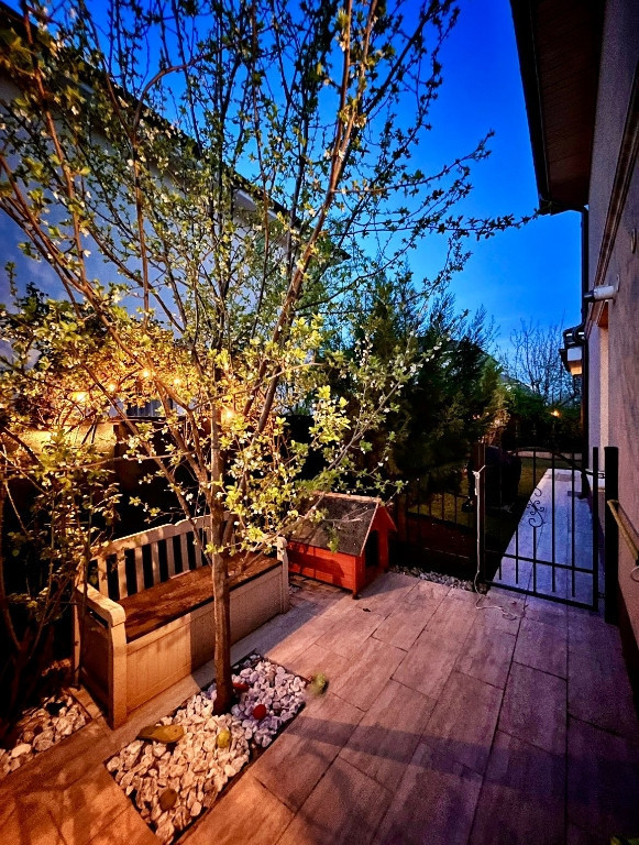 VILA DE VÂNZARE IN CORBEANCA PARK, 4 CAMERE, GARDEN LOUNGE/CONSERVATORY Corbeanca Park, unul din cele mai apreciate ansambluri din zona de Nord, este un cartier rezidential privat, ce se remarca prin aerul occidental, cu arhitectura elegantă si unitară a caselor, infrastructură completa, gândită și executată la cele mai inalte standarde, pozititionare ideala la liziera pădurii, extinsă printr-un landscaping cu spații verzi in proportie de peste 50% și facilități complete pentru comunitate. O dezvoltare rezidențială începută așa cum vedem in alte țări: mai intai cu o investiție masivă in urbanizare si infrastructură, continuată apoi de o execuție impecabila a caselor, cu integrarea acestora intr-un cadru natural deosebit. Un mediu in care de peste 10 ani s-a format o comunitate civilizată și primitoare, unde copiii cresc in siguranță, la aer curat, făcându-și prieteni și jucându-se afară, pe strazile păzite, bine luminate si fără trafic - “detalii” ce confera locuitorilor Corbeanca Park un standard de viață ridicat. Unicitatea acestei case constă într-un remarcabil concept de design, care a urmarit doua obiective: 1. Un balans perfect intre eleganță si confort, prin amenajările interioare cu finisaje in tonuri calde, mobilier de foarte buna calitate si accente de design gândite în cel mai mic detaliu. 2. Maximizarea spatiului de locuit - prin dublarea suprafeței standard a livingului cu un element original si spectaculos - garden room/conservatory. Cu o suprafață aditională de aproape 30 mp, cu geamuri top down, incalzire permanentă si amenajări de revistă, acest spatiu generos si extrem de luminos, ce conecteaza interiorul cu exteriorul, este o poveste în sine, 365 de zile/an. Un punct cheie al casei, unde va puteti relaxa înconjurați de privelistea verde a gradinii, unde puteti lua masa impreuna cu familia si prietenii, unde puteti citi sau savura un ceai deopotrivă. Asta dacă nu aveti copii si preiau ei spatiul pentru un permanent loc de joaca cu noii prieteni din ansamblu :)) De altfel, intreaga casa beneficiaza de cele mai bune alegeri in materie de amenajări si dotari, imbinand impecabil utilitatea cu designul. LA PARTER - redefinirea parterului prin maximizarea spațiului a creat o zona de zi extrem de chic, foarte generoasa, luminoasă si cu multiple utilizari. Bucataria realizata pe comanda, cu priveliste frumoasa spre gradina, comunica cu zona de dining cu masa de 6 persoane si livingul complet amenajat, din care se face accesul direct catre garden room. La parter mai regasim o baie cu duș, holul de acces primitor amenajat, dar si un spatiu de depozitare foarte util. LA ETAJ - Master bedroom cu pat king size confortabil si dressing "built in" incapator, dormitor secundar amenajat cu pat dublu pentru copii, birou si 2 dulapuri pentru hainute, baie de 5 mp cu cada si chiuveta dubla, hol cu lumina naturala. POD – din holul etajului exista acces catre pod, un spatiu adtitional util pentru depozitare CURTEA - este pavata pe zonele de utilitate, amenajata cu gazon si arbusti decorativi. Suprafata de 200 mp a terenului permite eforturi minime de întreținere in timp, fără a simti lipsa spațiilor verzi, care se regasesc cu generozitate in intreg ansamblul Corbeanca Park. Sistemul constructiv al casei: caramida Porotherm, plansee de beton intre etaje, termoizolatie exterioara de 10 cm. Pentru toate detaliile constructive - se pune la dispoziție cartea tehnică a casei. Alte dotari: - imprejmuire cu gard placat pe exterior cu piatra naturala si porti pentru masina - 2 locuri de parcare - racordare la toate utilitatile, contorizari. Intregul ansamblu beneficiaza de: - acces securizat si paza 24h/24 - loc de joaca pentru copii - infrastructura completa de utilitati (canalizare menajera si pluviala, gaz, curent electric, retea de fibra optica cu subtraversari pe sub asfalt, retea de hidranti, iluminat public) - spatii verzi extinse, cu vegetatie matura - strazi asfaltate generoase si bine luminate - servicii de administrare CORBEANCA PARK este ideal pozitionat in imediata apropiere a multiplelor puncte de interes: statie de masina, gradinite, Mega Image, Moara Corbeanca - restaurante, cafenele, curatatorie de haine, bancomat, farmacii etc. Nu ratati vizionarea acestei bijuterii de casă, "ready to move in" - cu design unicat, perfect amenajată pentru o familie sau un cuplu care dorește o rezidență deosebită, confortabilă, cu minime eforturi de mutare si întreținere, intr-un cartier rezidențial de elită.
