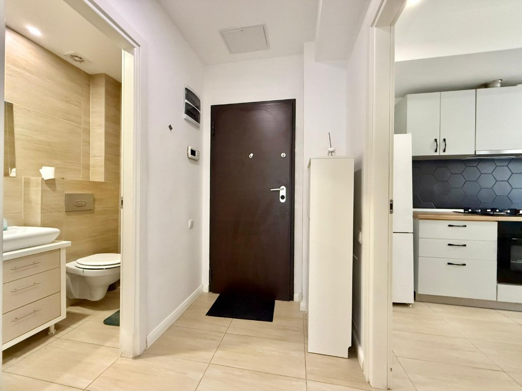 Va propunem spre vanzare un apartament de 3 camere, mobilat si utilat, cu vedere la piscina, in Complexul Rezidential Cosmopolis. Blocul este finalizat in anul 2017. Constructia este din caramida porotherm de 30 cm si izolatie de 10 cm. Apartamentul are centrala proprie si incalzire in pardoseala. Are o suprafata utila de 65 mp + 1 balcon de 10 mp (acces balcon atat din living cat si din dormitor), bucatarie separata, 2 bai, mobilat si utilat, exact asa cum putem vedea in fotografii. Este situat la etajul 3/5, al unui bloc bine pozitionat, fiind aproape de zona comerciala si statia de autobuz. Are orientare cardinala spre Sud-Vest cu vedere spre piscina si spatiul verde. Cartierului Rezidential Cosmopolis este pozitionat in partea de Nord a Bucurestiului avand acces facil catre zona de birouri Pipera, principalele zone de distractie si cumparaturi din Nord (Baneasa Shopping City, Promenada Mall, Gradina Zoo, Divertiland, Therme, etc.) si iesirile principale din Bucuresti catre munte si mare (A2 si A3). Este la 800 m de Autostrada Bucuresti-Ploiesti si intre cele doua poduri Pipera-Tunari si Andronache-Stefanestii de Jos. Locuinta beneficiaza de facilitatile complexului: Retail Park Cosmopolis Plaza cu peste 70 de magazine si 400 de locuri de parcare (retailer de top Jysk, C&A, Pepco, Tedi, Animax, Sinsay, Kik, Noriel, dar si branduri nationale bine-cunoscute Dr. Max, Domino's Pizza, Shaormeria Baneasa, Spartan, Magazin de produse traditionale, etc.) Supermarket-uri Lidl si Carrefour Supermecato Italia Restaurante si cafenele Sala de Fitness - WorldClass Terenuri de sport (1 teren fotbal, 2 terenuri de tenis) Peste 60 de piscine exterioare 2 gradinite (private), 1 scoala (privata), 1 scoala de stat in 4 parcuri (unul de aprox. 4000mp), 4 locuri de joaca pentru copii Centru medical Affidea Biserica ortodoxa si moschee Paza BGS 24/24 Transport asigurat pana la metrou Pipera Birou impozite si taxe locale Spalatorie auto si service auto, etc. Locuinta are toate documentele necesare pentru vanzare. Pentru detalii si vizionari, va stam la dispozitie.
