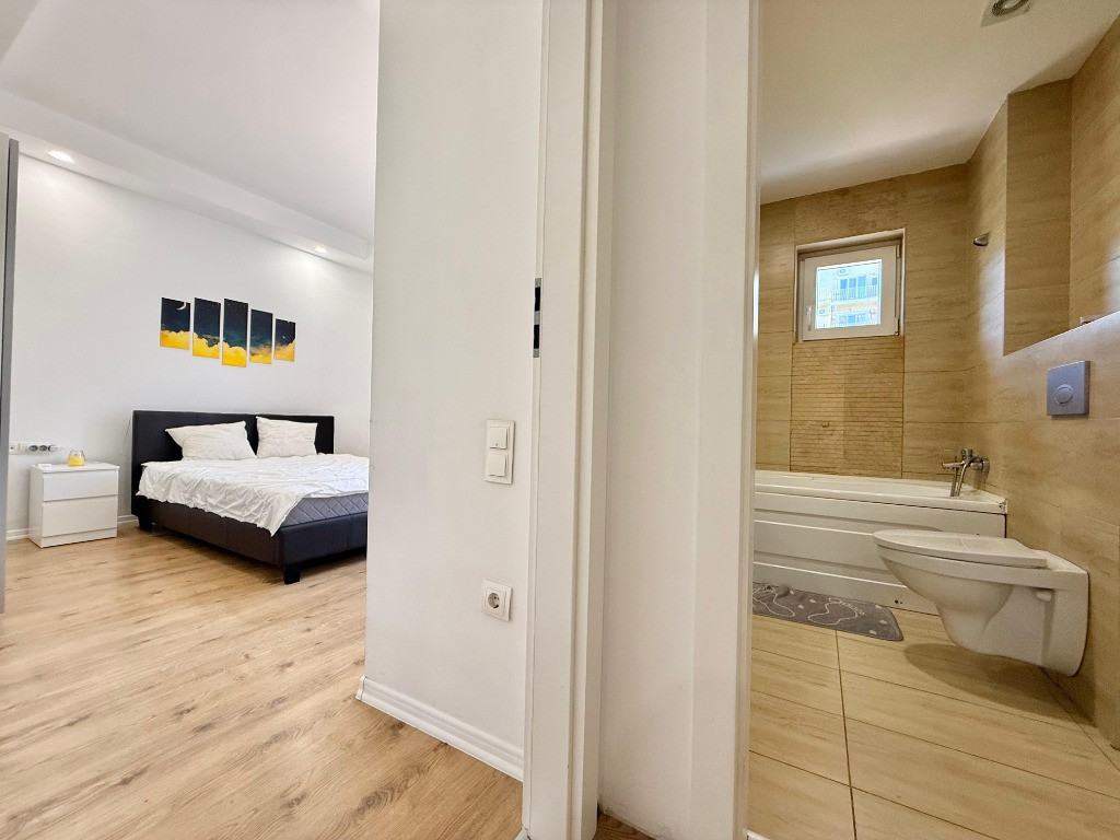 Va propunem spre vanzare un apartament de 2 camere, cu gradina mare, in Complexul Rezidential Cosmopolis. Blocul este finalizat in anul 2016, constructia fiind din caramida porotherm de 30 cm si izolatie de 10 cm. Apartamentul are centrala proprie si incalzire in pardoseala. Are o suprafata utila de 46 mp + gradina pe colt de 80 mp cu vedere spre piscina si spatiul verde. Se vinde mobilat si utilat, asa cum putem vedea in fotografii. Apartamentul este bine pozitionat, fiind aproape de statia de autobuz si zona comerciala. Cartierului Rezidential Cosmopolis este pozitionat in partea de Nord a Bucurestiului avand acces facil catre zona de birouri Pipera, principalele zone de distractie si cumparaturi din Nord (Baneasa Shopping City, Promenada Mall, Gradina Zoo, Divertiland, Therme, etc.) si iesirile principale din Bucuresti catre munte si mare (A2 si A3). Este la 800 m de Autostrada Bucuresti-Ploiesti si intre cele doua poduri Pipera-Tunari si Andronache-Stefanestii de Jos. Locuinta beneficiaza de facilitatile complexului: Retail Park Cosmopolis Plaza cu peste 70 de magazine si 400 de locuri de parcare (retailer de top Jysk, C&A, Pepco, Tedi, Animax, Sinsay, Kik, Noriel, dar si branduri nationale bine-cunoscute Dr. Max, Domino's Pizza, Shaormeria Baneasa, Spartan, Magazin de produse traditionale, etc.) Supermarket-uri Lidl si Carrefour Supermecato Italia Restaurante si cafenele Sala de Fitness - WorldClass Terenuri de sport (1 teren fotbal, 2 terenuri de tenis) Peste 60 de piscine exterioare 2 gradinite (private), 1 scoala (privata), 1 scoala de stat in 4 parcuri (unul de aprox. 4000mp), 4 locuri de joaca pentru copii Centru medical Affidea Biserica ortodoxa si moschee Paza BGS 24/24 Transport asigurat pana la metrou Pipera Birou impozite si taxe locale Spalatorie auto si service auto, etc. Locuinta are toate documentele necesare pentru vanzare. Pentru detalii si vizionari, va stam la dispozitie.