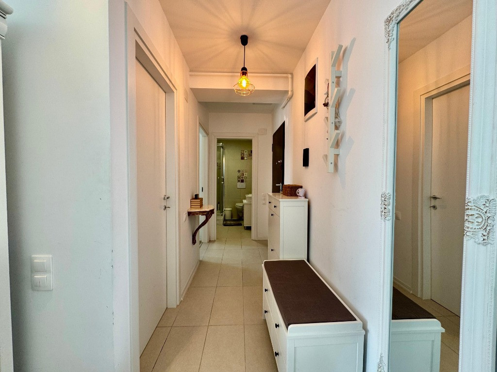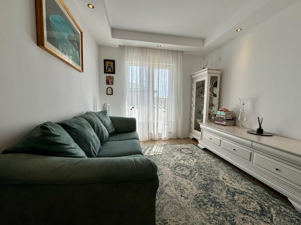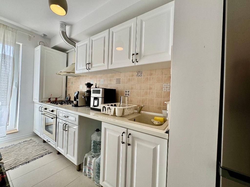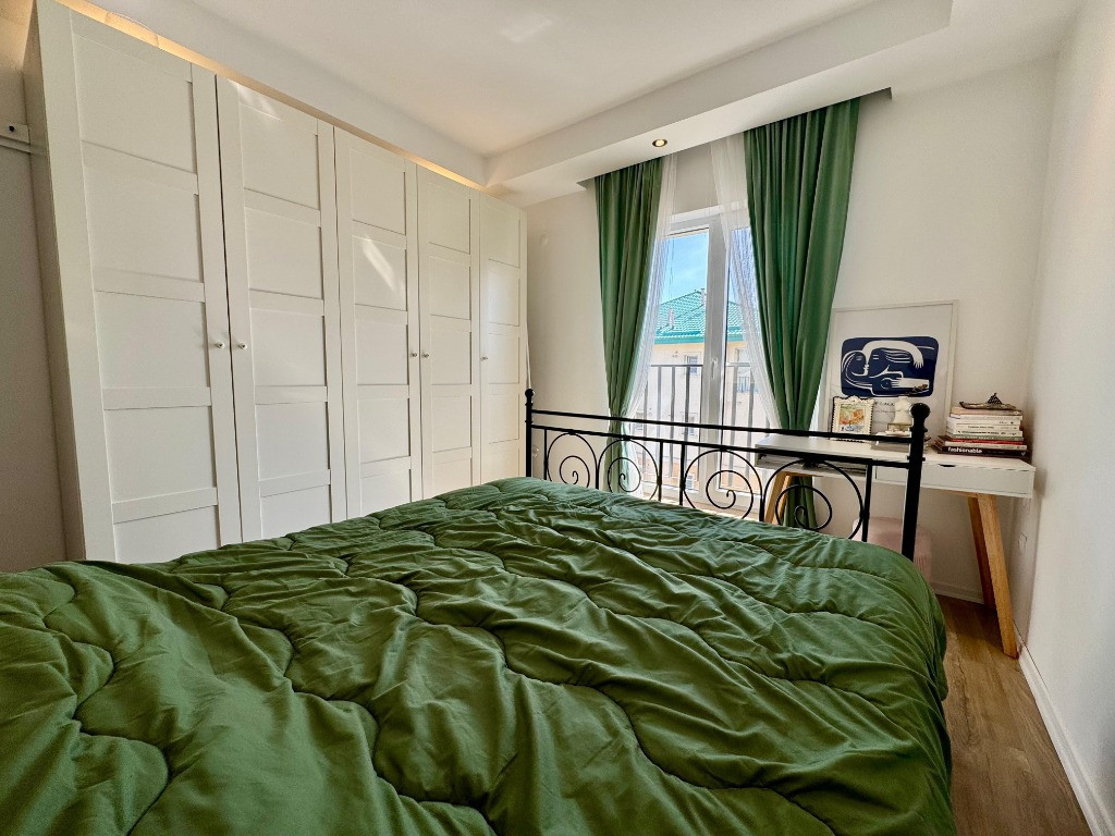 Va propunem spre vanzare un apartament de 2 camere tip studio, mobilat si utilat, in Complexul Rezidential Cosmopolis. Blocul este finalizat in anul 2019, constructia fiind din caramida porotherm de 30 cm si izolatie de 10 cm. Apartamentul are centrala proprie si incalzire in pardoseala. Se afla la etajul 6/6 (acoperis oblic), are o suprafata de 43 mp utili plus 5 mp balcon. Se vinde mobilat si utilat insa fara masuta suspendata de pe hol, lampa verticala din living, noptierele de langa pat si purificatorul de aer. Centrala a fost schimbata de curand, iar mobilierul este in mare parte Mobexpert.. Are orientare spre Sud-Est, oferind o superba priveliste spre piscina si zona de vile. Blocul in care se afla, este foarte bine pozitionat, fiind aproape de statia de autobuz si zona comerciala. Cartierului Rezidential Cosmopolis este pozitionat in partea de Nord a Bucurestiului avand acces facil catre zona de birouri Pipera, principalele zone de distractie si cumparaturi din Nord (Baneasa Shopping City, Promenada Mall, Gradina Zoo, Divertiland, Therme, etc.) si iesirile principale din Bucuresti catre munte si mare (A2 si A3). Este la 800 m de Autostrada Bucuresti-Ploiesti si intre cele doua poduri Pipera-Tunari si Andronache-Stefanestii de Jos. Locuinta beneficiaza de facilitatile complexului: Retail Park Cosmopolis Plaza cu peste 70 de magazine si 400 de locuri de parcare (retailer de top Jysk, C&A, Pepco, Tedi, Animax, Sinsay, Kik, Noriel, dar si branduri nationale bine-cunoscute Dr. Max, Domino's Pizza, Shaormeria Baneasa, Spartan, Magazin de produse traditionale, etc.) Supermarket-uri Lidl si Carrefour Supermecato Italia Restaurante si cafenele Sala de Fitness - WorldClass Terenuri de sport (1 teren fotbal, 2 terenuri de tenis) Peste 60 de piscine exterioare 2 gradinite (private), 1 scoala (privata), 1 scoala de stat in 4 parcuri (unul de aprox. 4000mp), 4 locuri de joaca pentru copii Centru medical Affidea Biserica ortodoxa si moschee Paza BGS 24/24 Transport asigurat pana la metrou Pipera Birou impozite si taxe locale Spalatorie auto si service auto, etc. Locuinta are toate documentele necesare pentru vanzare. Pentru detalii si vizionari, va stam la dispozitie.