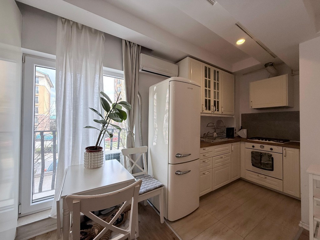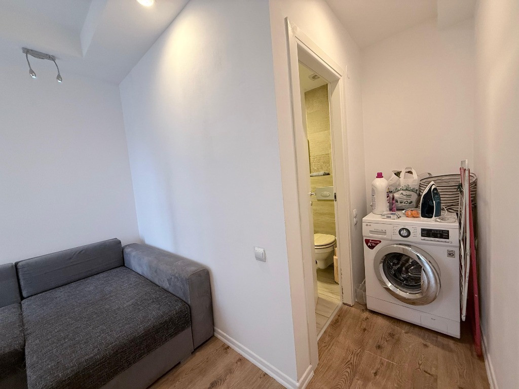 Va propunem spre vanzare un apartament de 3 camere, mobilat si utilat, in Complexul Rezidential Cosmopolis. Blocul este finalizat in anul 2015. Constructia este din caramida porotherm de 30 cm si izolatie de 10 cm. Apartamentul are centrala proprie si incalzire in pardoseala. Situat la etajul 1/5, are o suprafata utila de 55 mp + 2 balcoane (5 mp si 3 mp), si se vinde mobilat si utilat, exact asa cum putem vedea in fotografii. In pretul afisat, este inclus si un loc de parcare. Cartierului Rezidential Cosmopolis este pozitionat in partea de Nord a Bucurestiului avand acces facil catre zona de birouri Pipera, principalele zone de distractie si cumparaturi din Nord (Baneasa Shopping City, Promenada Mall, Gradina Zoo, Divertiland, Therme, etc.) si iesirile principale din Bucuresti catre munte si mare (A2 si A3). Este la 800 m de Autostrada Bucuresti-Ploiesti si intre cele doua poduri Pipera-Tunari si Andronache-Stefanestii de Jos. Locuinta beneficiaza de facilitatile complexului: Retail Park Cosmopolis Plaza cu peste 70 de magazine si 400 de locuri de parcare (retailer de top Jysk, C&A, Pepco, Tedi, Animax, Sinsay, Kik, Noriel, dar si branduri nationale bine-cunoscute Dr. Max, Domino's Pizza, Shaormeria Baneasa, Spartan, Magazin de produse traditionale, etc.) Supermarket-uri Lidl si Carrefour Supermecato Italia Restaurante si cafenele Sala de Fitness - WorldClass Terenuri de sport (1 teren fotbal, 2 terenuri de tenis) Peste 60 de piscine exterioare 2 gradinite (private), 1 scoala (privata), 1 scoala de stat in 4 parcuri (unul de aprox. 4000mp), 4 locuri de joaca pentru copii Centru medical Affidea Biserica ortodoxa si moschee Paza BGS 24/24 Transport asigurat pana la metrou Pipera Birou impozite si taxe locale Spalatorie auto si service auto, etc. Locuinta are toate documentele necesare pentru vanzare. Pentru detalii si vizionari, va stam la dispozitie.