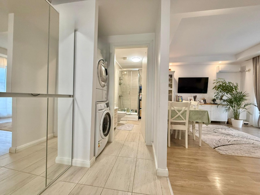 Va propunem spre vanzare un apartament de 3 camere, spatios, cu vedere spre piscina, in Complexul Rezidential Cosmopolis. Blocul este finalizat in anul 2020. Constructia este din caramida porotherm de 30 cm si izolatie de 10 cm. Apartamentul are centrala proprie si incalzire in pardoseala. Are o suprafata utila de 75 mp + 2 balcoane ( 3mp respectiv 4 mp), decomandat, multe spatii de depozitare. Este situat la etajul 3/6, orientare spre Sud, cu vedere la piscina. Se vinde partial mobilat. In pretul apartamentului este inclus si un loc de parcare suprateran. Cartierului Rezidential Cosmopolis este pozitionat in partea de Nord a Bucurestiului avand acces facil catre zona de birouri Pipera, principalele zone de distractie si cumparaturi din Nord (Baneasa Shopping City, Promenada Mall, Gradina Zoo, Divertiland, Therme, etc.) si iesirile principale din Bucuresti catre munte si mare (A2 si A3). Este la 800 m de Autostrada Bucuresti-Ploiesti si intre cele doua poduri Pipera-Tunari si Andronache-Stefanestii de Jos. Locuinta beneficiaza de facilitatile complexului: Retail Park Cosmopolis Plaza cu peste 70 de magazine si 400 de locuri de parcare (retailer de top Jysk, C&A, Pepco, Tedi, Animax, Sinsay, Kik, Noriel, dar si branduri nationale bine-cunoscute Dr. Max, Domino's Pizza, Shaormeria Baneasa, Spartan, Magazin de produse traditionale, etc.) Supermarket-uri Lidl si Carrefour Supermecato Italia Restaurante si cafenele Sala de Fitness - WorldClass Terenuri de sport (1 teren fotbal, 2 terenuri de tenis) Peste 60 de piscine exterioare 2 gradinite (private), 1 scoala (privata), 1 scoala de stat in 4 parcuri (unul de aprox. 4000mp), 4 locuri de joaca pentru copii Centru medical Affidea Biserica ortodoxa si moschee Paza BGS 24/24 Transport asigurat pana la metrou Pipera Birou impozite si taxe locale Spalatorie auto si service auto, etc. Locuinta are toate documentele necesare pentru vanzare. Pentru detalii si vizionari, va stam la dispozitie.