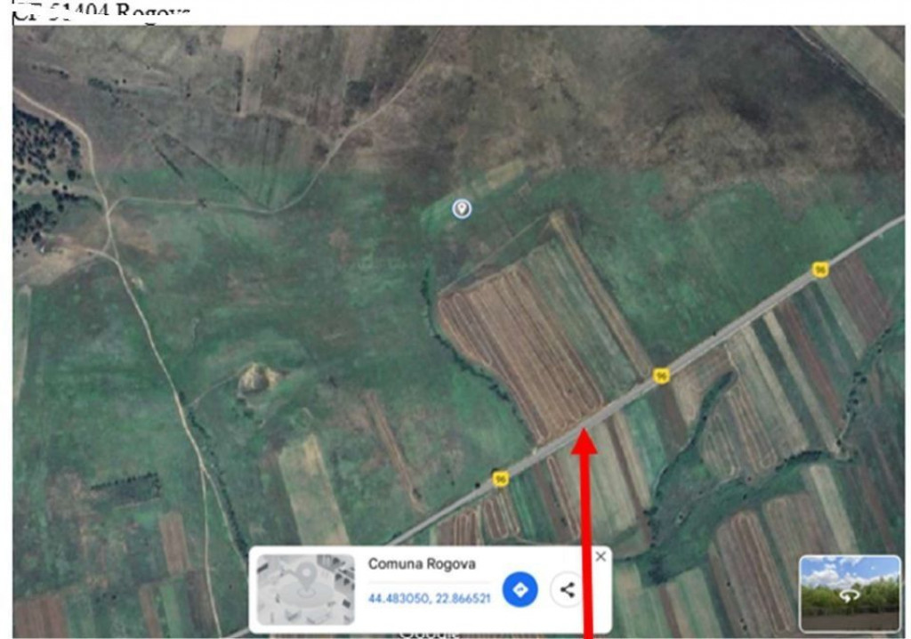 Se vinde la licitatie! Se vinde cota de 1/2! Teren situat in extravilanul comunei Rogova, cu suprafata de : 29.400 mp; Fara utilitati. Accesul se face pe drum de pamant (drum de exploatare).
