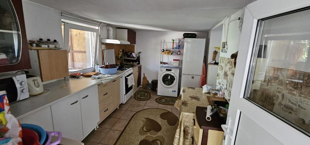 Ocazie ! Va propunem o casa cu 3 dormitoare , 1 baie , sala de servit masa , bucatarie , foisor , 2 garaje , solar in spate etc . Casa este construita din chirpic , are centrala pe gaze , termopane , izolata exterior . Se vinde la pret de teren intravilan , suprafata teren 500 mp , deschidere 14 ml , acte la zi .