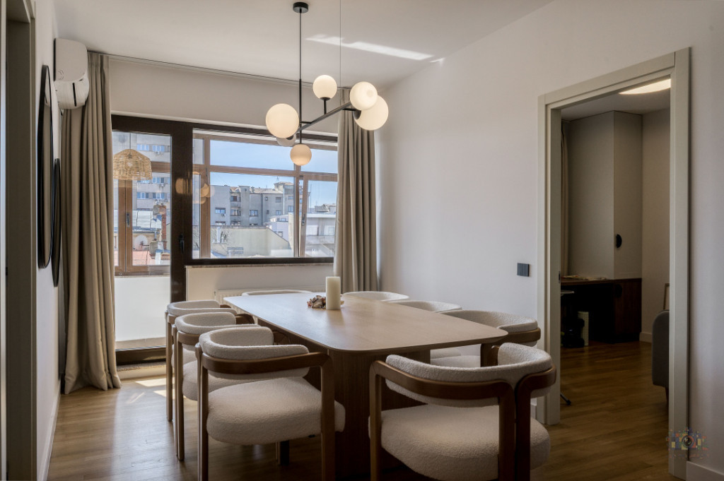 Situat într-unul dintre cele mai rafinate și căutate perimetre ale capitalei, Dacia – Eminescu, la doar câteva minute de Grădina Icoanei, acest apartament cu 4 camere reprezintă o combinație armonioasă între eleganța designului contemporan și confortul unei locuințe de familie. Proprietatea se află într-un imobil modern finalizat în anul 2009 și oferă o suprafață utilă generoasă de 114 mp, atent compartimentată pentru a crea spații fluide, luminoase și funcționale. Apartamentul a fost complet renovat recent, sub coordonarea unui arhitect, fiecare detaliu fiind gândit pentru a obține un interior coerent, sofisticat și atemporal. Conceptul de amenajare se remarcă printr-un design minimalist, elegant și cald, în care liniile curate sunt completate de texturi naturale și materiale de foarte bună calitate. Atmosfera este una primitoare și echilibrată, spațiul fiind ideal pentru o familie cu doi copii, oferind atât zone de relaxare confortabile, cât și spații intime bine definite. Finisajele premium, paleta cromatică rafinată și atenția acordată detaliilor conferă locuinței o identitate discretă, dar distinsă. Apartamentul dispune de centrală termică proprie, asigurând independență și eficiență în gestionarea confortului termic. Poziționarea excelentă, într-o zonă centrală apreciată pentru arhitectura sa elegantă, proximitatea parcurilor, cafenelelor și a celor mai bune școli din oraș, transformă această proprietate într-o locuință ideală pentru un stil de viață urban, sofisticat și echilibrat. Id intern: P249213