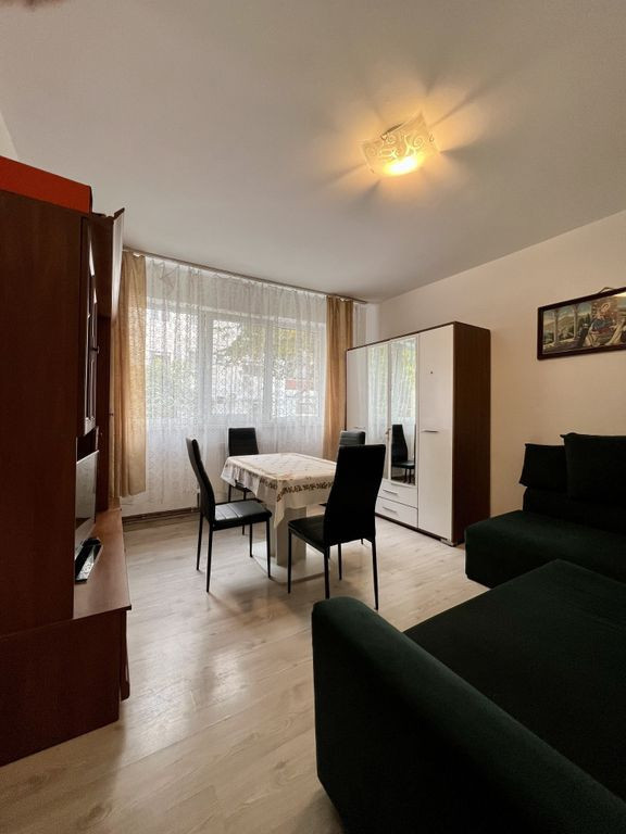 Disponibil imediat pentru inchiriere, acest apartament situat la parterul unui imobil construit pe 4 niveluri este ideal pentru cine doreste sa locuiasca in apropiere de zona centrala si sa beneficieze de liniste. In imediata vecinatate regasim Gradinita cu program prelungit nr 3, Fast Food Antalya, Service auto AC, Alma Beauty Studio iar in zona apropiata se afla Piata Doina, Profi Super, Bdul Liviu Rebreanu etc. Distanta pana la Shopping City Mall este de 5 minute cu masina si 15minute pana in Piata Unirii, in conditii de trafic moderat. In vecinatate se regasesc de asemenea statii de mijloace de transport public in comun. Apartamentul este decomandat si are o suprafata de 48 mp utli, la care se adauga si beciul propriu, cu acces din balconul inchis, cu o suprafata generoasa, ideal pentru depozitat sau folosit ca si camara. Compartimentare: hol intrare, bucatarie inchisa complet mobilata si utilata, baie cu cada si geam, camera de zi cu canapea extensibila si loc de luat masa, dormitor cu acces spre balconul inchis de unde se poate cobori in beciul propriu. Dotari si facilitati: - Centrala termica proprie cu calorifere. - Aragaz + hota. - Cuptor cu microunde. - Frigider cu congelator. - Masina de spalat rufe. - Televizor. - Canapea extensibila. - Beci generos pentru depozitare, cu acces din balcon. Costurile utilitatilor si de intretinere nu depasesc 350 - 400 lei in lunile de iarna. Apartamentul este ideal pentru un cuplu care doreste sa locuiasca intr-o zona linistita, cu acces facil spre principalele puncte de interes ale orasului. Se doreste inchirierea pe o perioada de minim un an ( in caz contrar se pierde garantia ), iar pretul unei luni de chirie este de 370 euro + o luna de garantie. Apartamentul se inchiriaza cu 0% COMISION pentru chirias si se poate ocupa imediat. Pentru detalii si vizionari nu ezitati sa ne contactati !