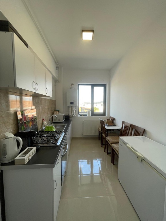 Se închiriază un apartament cu 2 camere decomandat, cu o suprafață generoasă de 66 mp, aflat la prima închiriere și nelocuit până acum. Locuința dispune de bucătărie complet mobilată și utilată, iar dacă viitorul chiriaș consideră că ar mai fi nevoie de vreun aparat electrocasnic sau dotare suplimentară, se poate discuta și achiziționa fără nicio problemă. Apartamentul este disponibil pentru mutare imediată și beneficiază de o poziționare excelentă, într-un imobil P+1E+Pod cu placă de beton, cu puțini vecini și spații comerciale la parter (Mega Image Shop&Go, florărie, restaurant), iar în spate se dezvoltă noi facilități comerciale. Este alegerea ideală pentru cei care își doresc un spațiu modern, practic și luminos – fie că lucrează de acasă, fie că au familie, având în zonă școală gimnazială și grădiniță. ???? Chirie: 350 € / lună Se solicită o lună avans + o lună garanție.