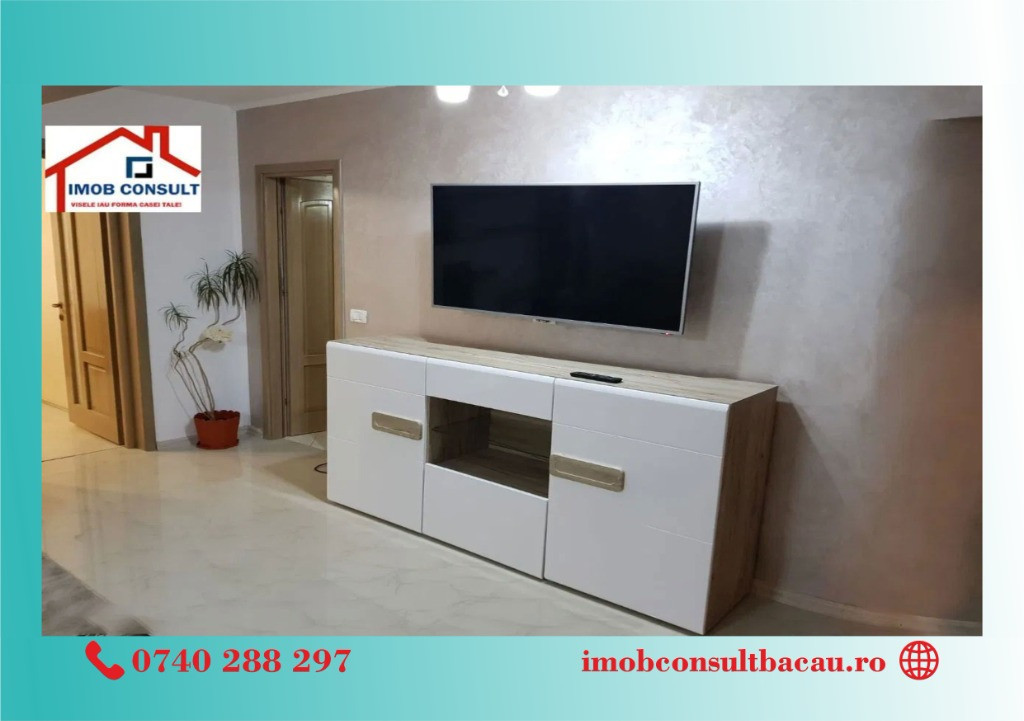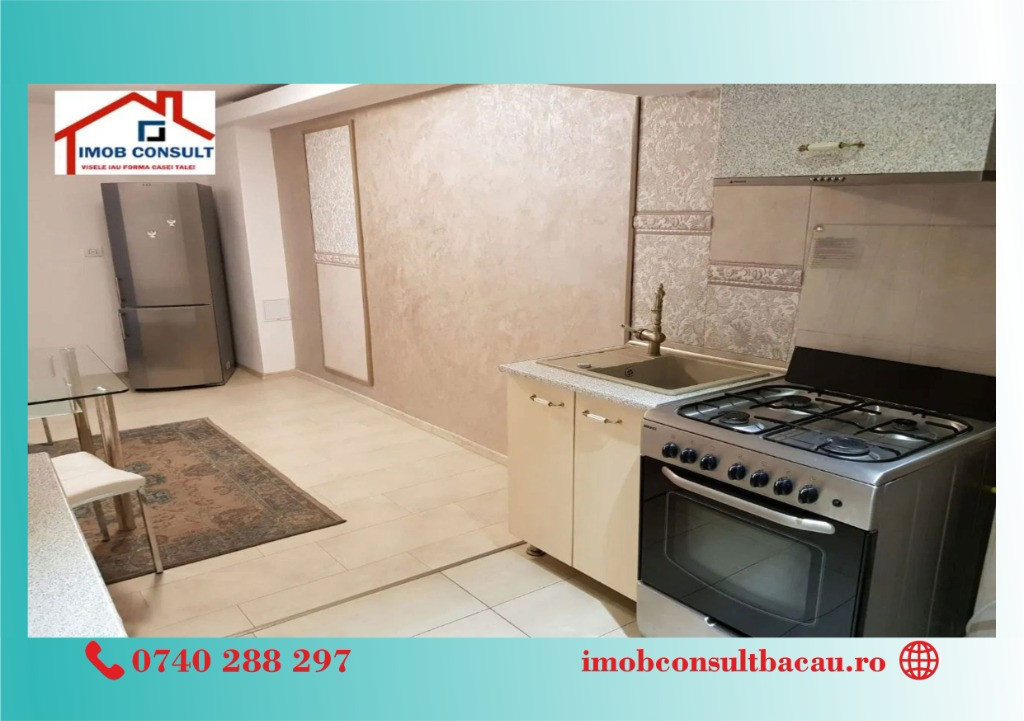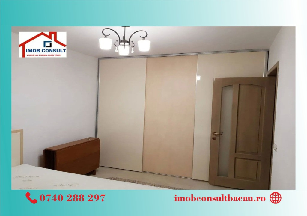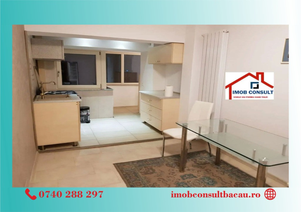 Echipa Imob Consult Bacau vă propune spre închiriere un apartament cu 2 camere, decomandat, situat în centrul municipiului Bacău, într-un imobil modern, dotat cu lift. Apartamentul este amplasat la etajul 2 din 8 și se remarcă printr-o compartimentare eficientă și o suprafață generoasă. Caracteristici principale: • 2 camere decomandate • Suprafață generoasă • Etaj 2 / 8, bloc nou cu lift • Balcon spațios • Centrală termică proprie și aer condiționat • Loc de parcare inclus • Complet mobilat și utilat Apartamentul oferă un nivel ridicat de confort și finisaje moderne, fiind ideal pentru persoane care își doresc o locuință elegantă, amplasată într-o zonă centrală, cu acces rapid la toate punctele de interes (instituții, magazine, restaurante, transport public). Contactează-ne pentru detalii și programarea unei vizionări! Ne gasesti la nr. de tel: - Corina: 0740 288 297; - Ioana: 0758 262 533, sau la sediul agenției noastre, Imob Consult Bacau, situat pe strada Banca Națională nr. 27 la intersecția cu Str. Neagoe Vodă, langa Irish Pub.