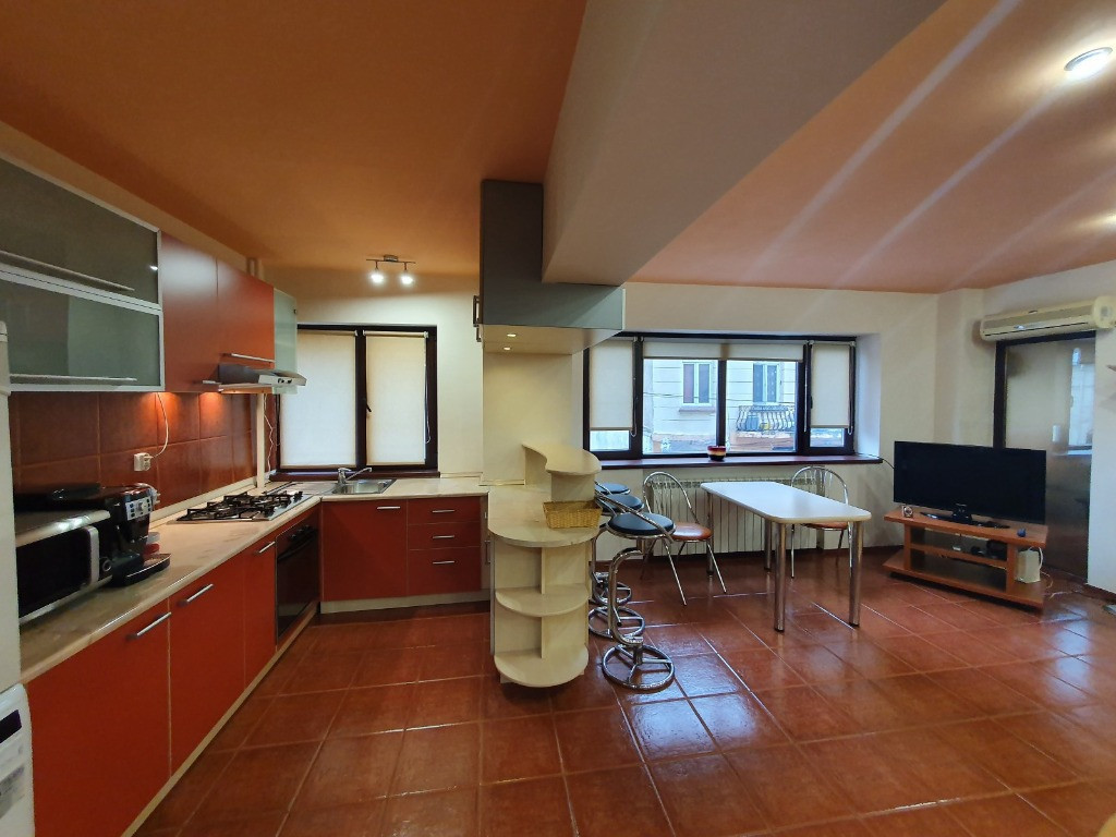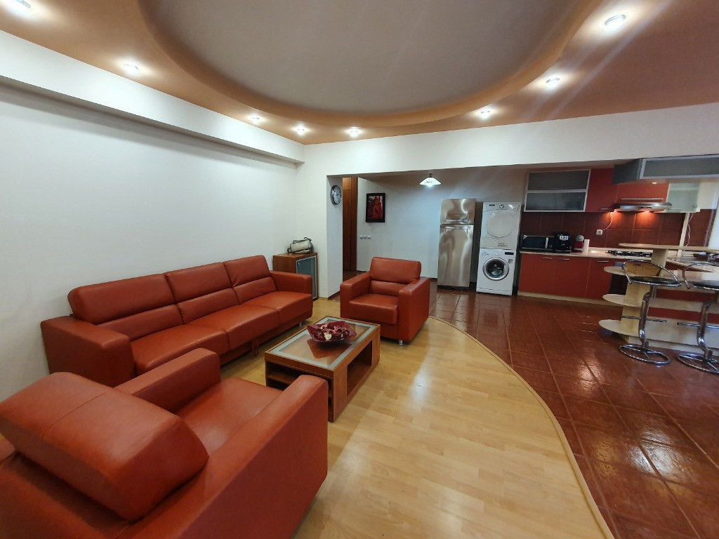 Eurocity Estate vă propune spre închiriere un apartament de 3 camere situat în zona Universitate – km 0, una dintre cele mai căutate și dinamice zone ale Bucureștiului. Apartamentul este complet mobilat și utilat modern, beneficind de dotări precum aer condiționat în fiecare cameră, mașină de spălat rufe, uscător electric, combină frigorifică, cuptor cu microunde, aragaz și aspirator — totul pregătit pentru confortul viitorului chiriaș. Situat la etajul 1 al unui imobil cu 7 niveluri, apartamentul dispune de o suprafață generoasă de 110 mp. Cele două dormitoare au fiecare baie proprie și dressing, iar la intrare se află încă un grup sanitar de serviciu. Finisajele sunt de calitate: parchet, gresie, faianță și tâmplărie termoizolantă, iar imobilul beneficiază de centrală termică proprie (bloc), construcție 1970. Proprietatea se închiriază doar pe baza unui contract înregistrat la ANAF și este ideală pentru persoane străine, expați sau angajați ai companiilor multinaționale. Localizarea este excelentă: la doar câțiva pași de stația de metrou Universitate, teatre, cinematografe, restaurante, hipermarketuri, Parcul Cișmigiu, Centrul Istoric și numeroase obiective turistice. Apartamentul este disponibil imediat. Eurocity Estate presents a stylish 3-room apartment for rent, located in the highly desirable University area – km 0, right in the heart of Bucharest. The apartment comes fully furnished and equipped, featuring modern appliances such as A/C in every room, washing machine, electric dryer, refrigerator, microwave, stove and vacuum cleaner — offering all the comfort needed for a premium living experience. Located on the 1st floor of a 7-level building, the property offers a generous usable area of 110 sqm. Each of the two bedrooms has its own private bathroom and dressing room, plus an additional guest bathroom at the entrance. High-quality finishes include wooden parquet, ceramic tiles and insulated windows. The building is equipped with its own central heating system (1970 construction). The property is available strictly under a registered rental contract (ANAF) and is especially suitable for expats or employees of multinational companies. Its location is exceptional — just a few steps away from the University metro station, theaters, cinemas, restaurants, supermarkets, Cișmigiu Park, the Old Town and numerous tourist attractions. Available immediately.